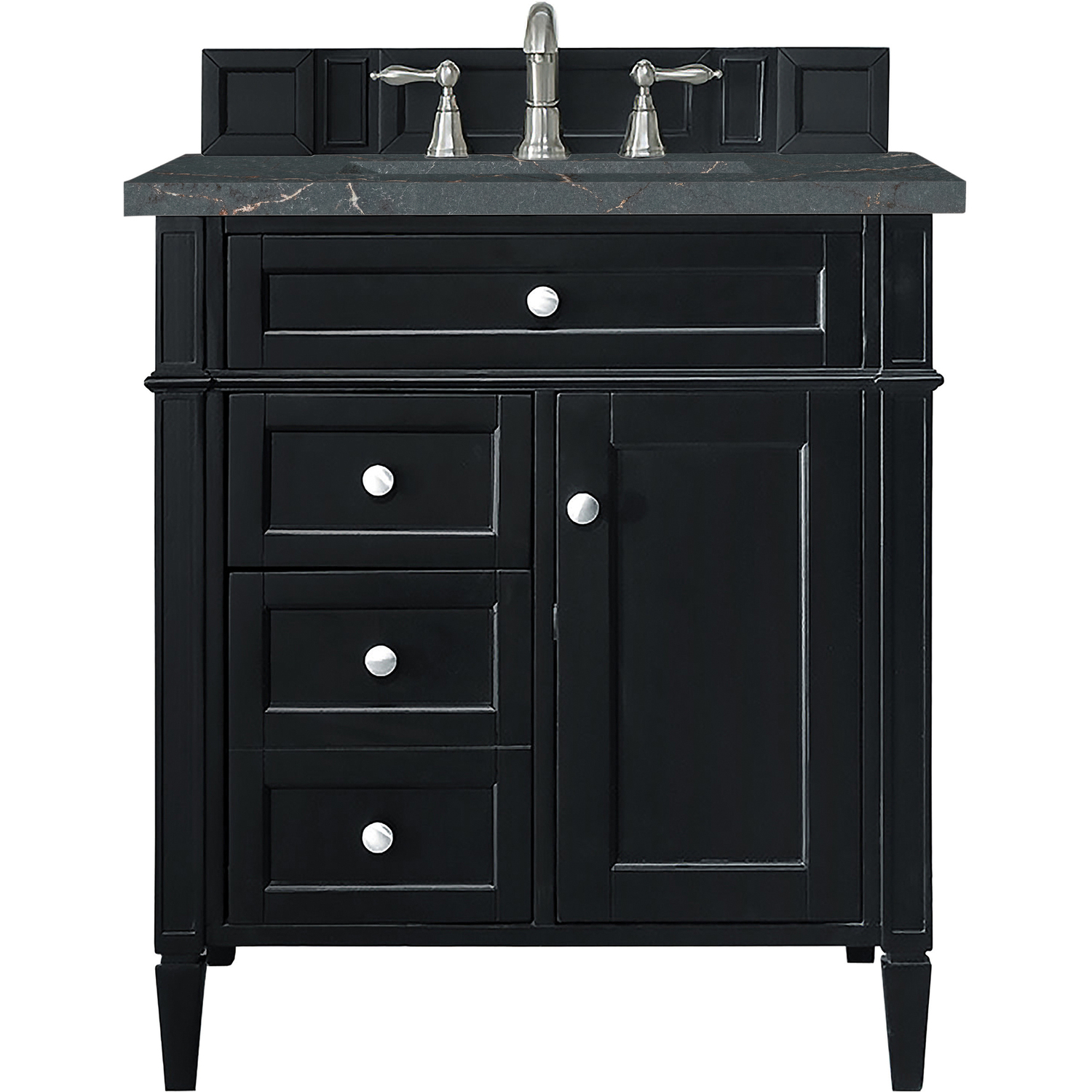 James Martin Brittany 30 inch Single Vanity, Black Onyx, w/ 3 CM Parisien Bleu Quartz Top, 840108968075, 650-V30-BKO-3PBL