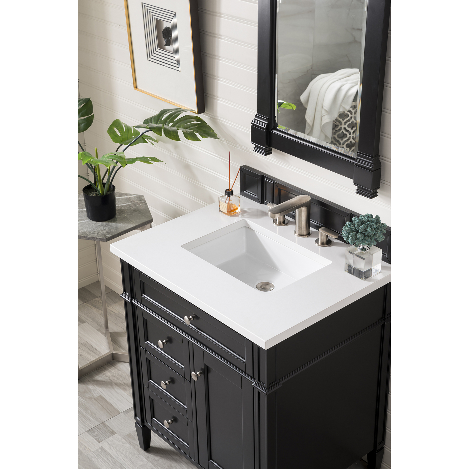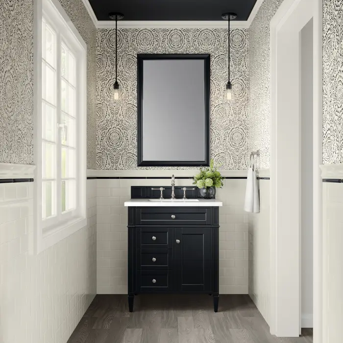 James Martin Brittany 30 inch Single Bathroom Vanity, Black Onyx, w/ 3 CM White Zeus Quartz Top 650-V30-BKO-3WZ