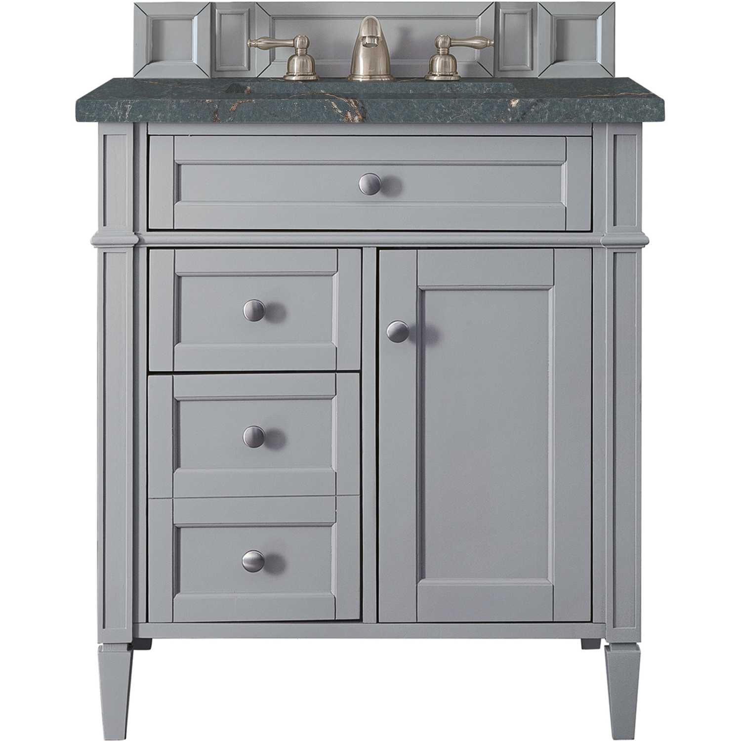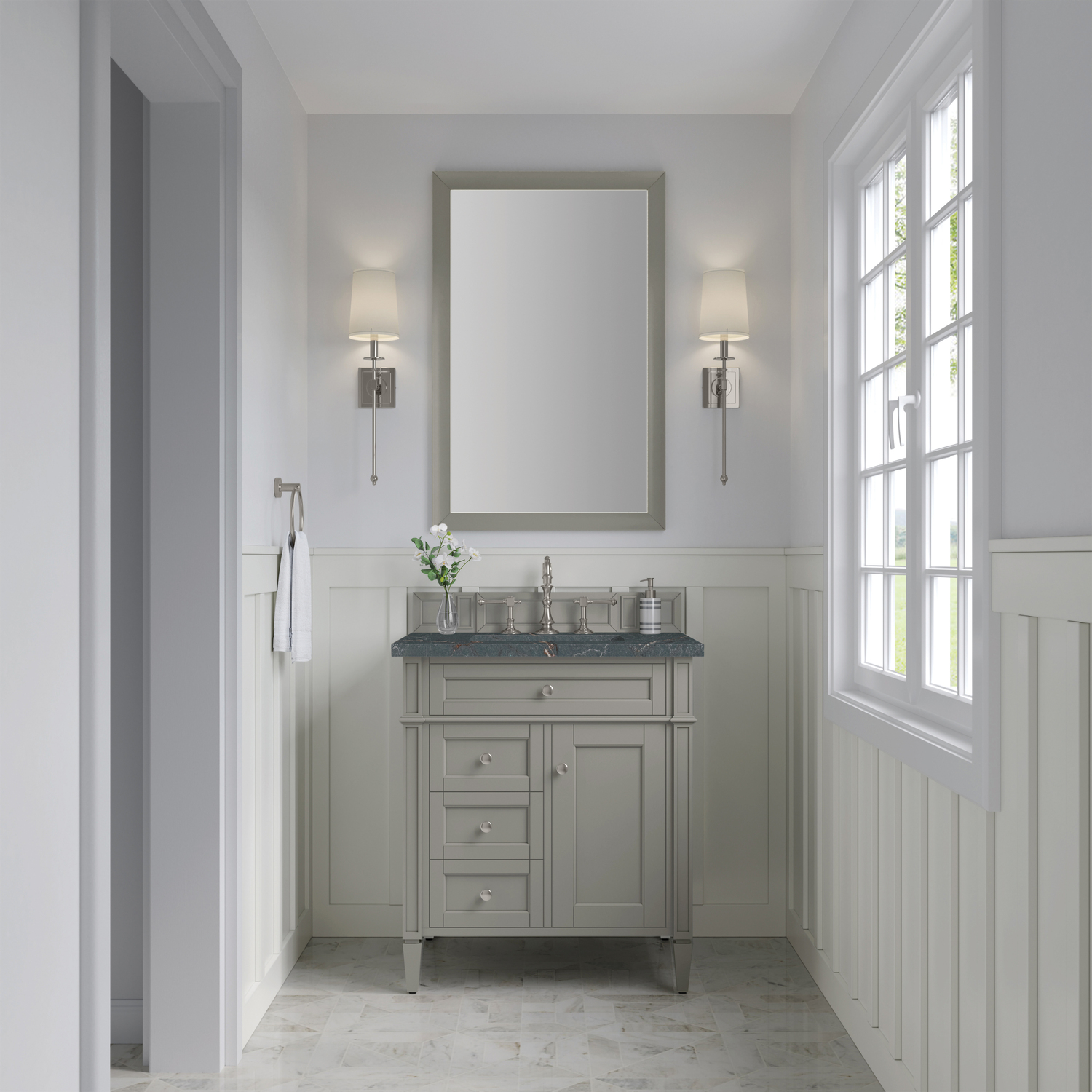 James Martin Brittany 30 inch Single Vanity, Urban Gray, w/ 3 CM Parisien Bleu Quartz Top, 840108968112, 650-V30-UGR-3PBL