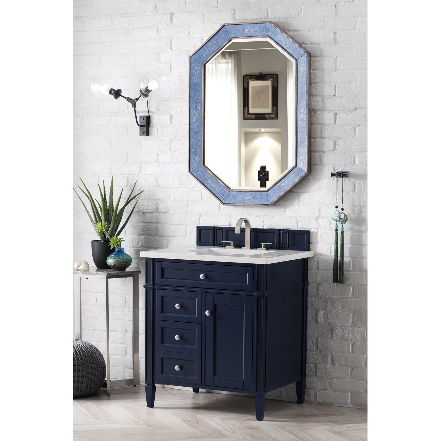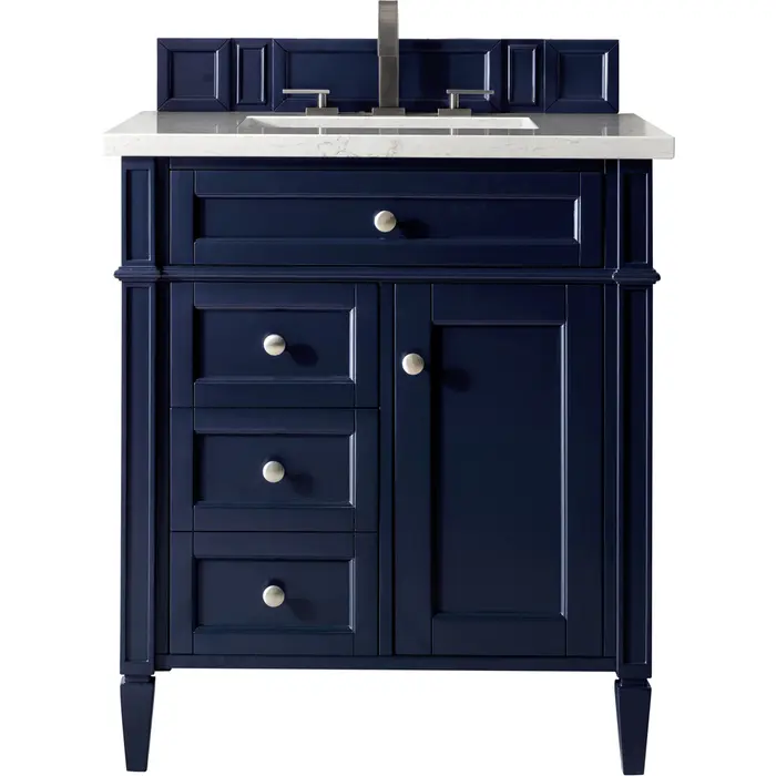 James Martin Brittany 30 inch Single Bathroom Vanity, Victory Blue w/ 3 CM Eternal Jasmine Pearl Quartz Top 650-V30-VBL-3EJP
