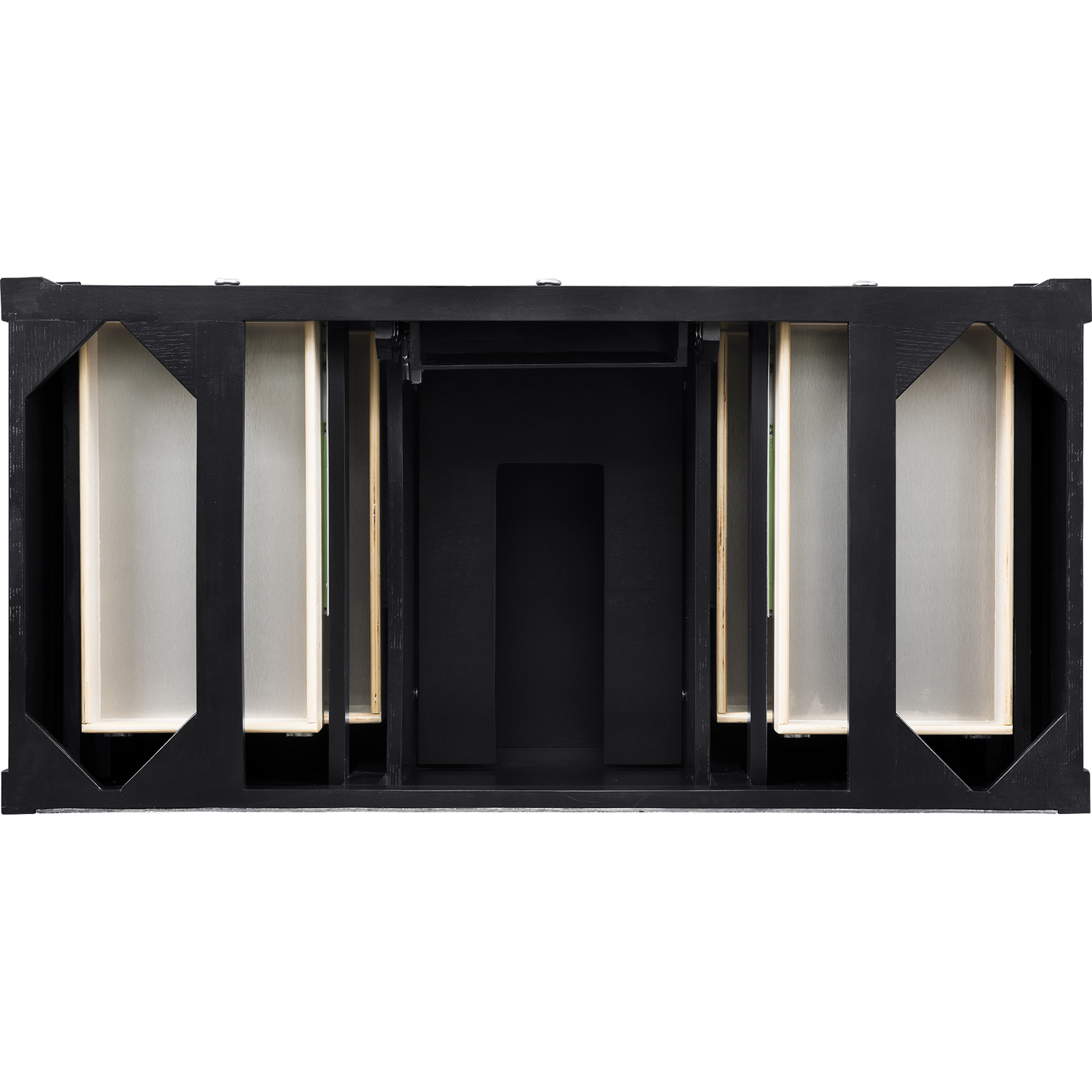- Drawer bottoms are lined with our signature brushed aluminum laminate