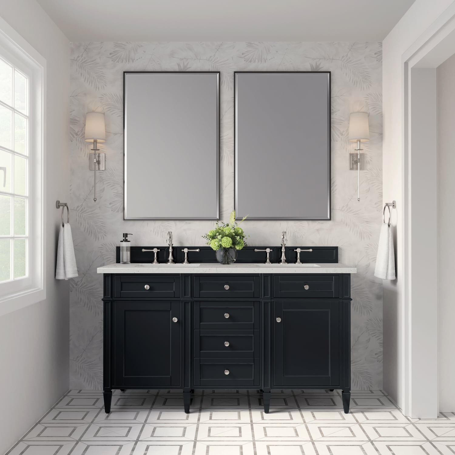 James Martin Brittany 60 inch Double Vanity, Black Onyx w/ 3 CM Lime Delight Quartz Top, 840108969782, 650-V60D-BKO-3LDL