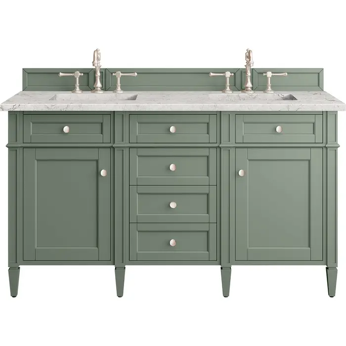James Martin Brittany 60 inch Double Bathroom Vanity, Smokey Celadon w/ 3 CM Eternal Jasmine Pearl Top 650-V60D-SC-3EJP