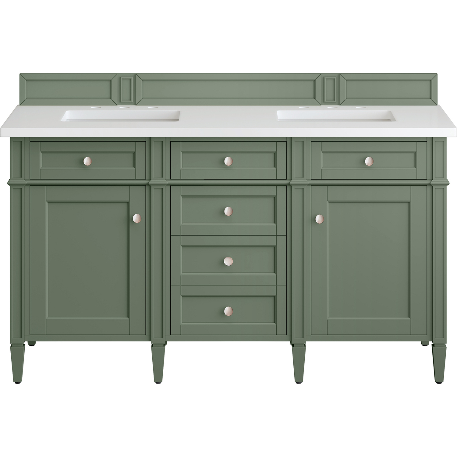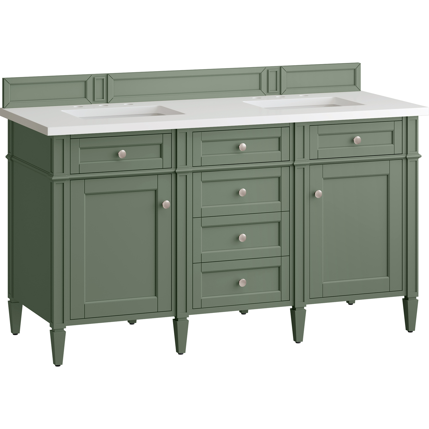James Martin Brittany 60 inch Double Bathroom Vanity, Smokey Celadon w/ 3 CM White Zeus Top 650-V60D-SC-3WZ