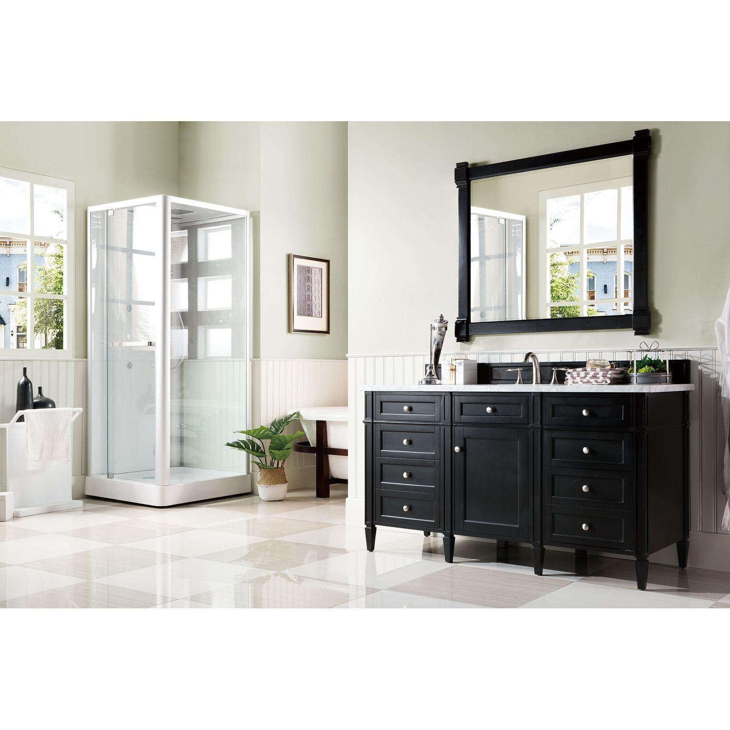 James Martin Brittany 60 inch Single Bathroom Vanity, Black Onyx w/ 3 CM Carrara Marble Top 650-V60S-BKO-3CAR