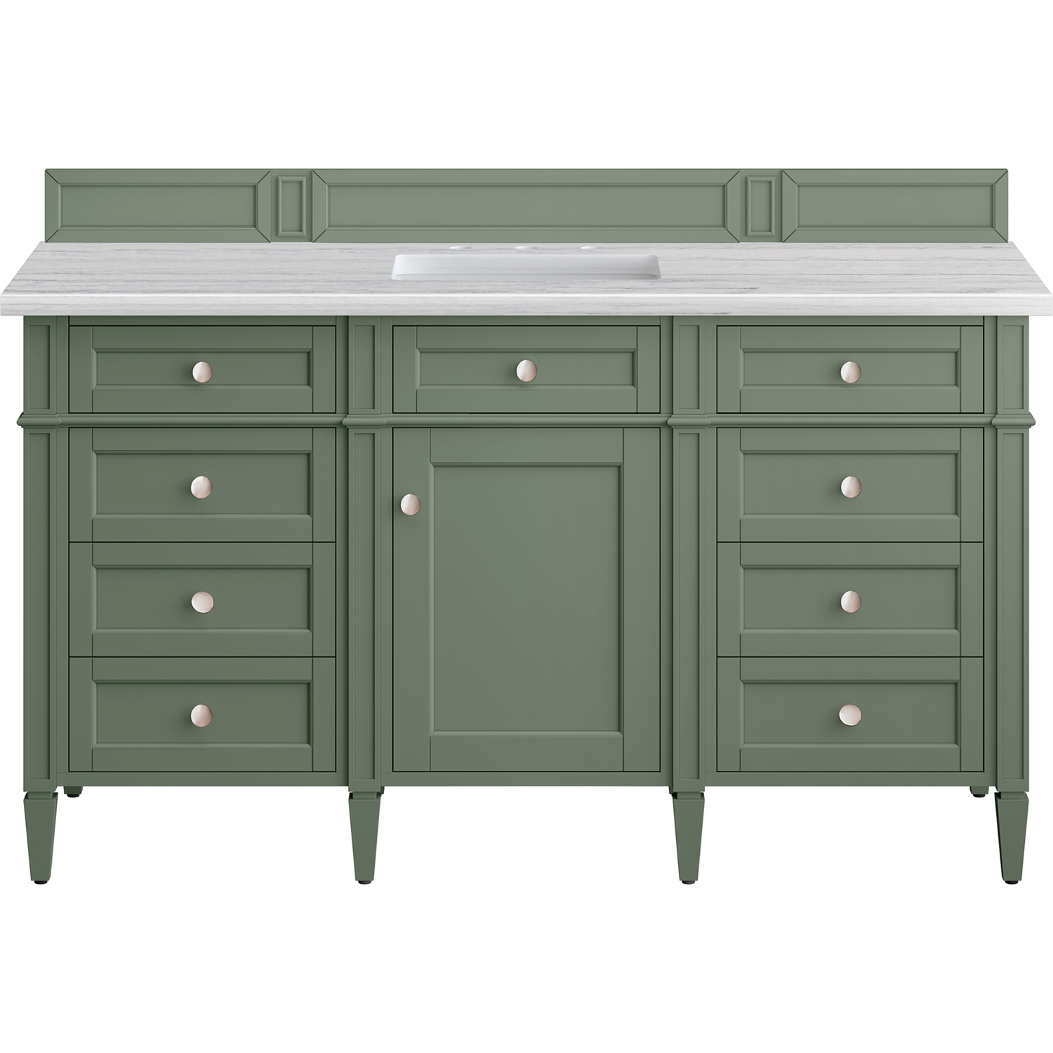 James Martin Brittany 60 inch Single Bathroom Vanity, Smokey Celadon w/ 3 CM Arctic Fall Top 650-V60S-SC-3AF