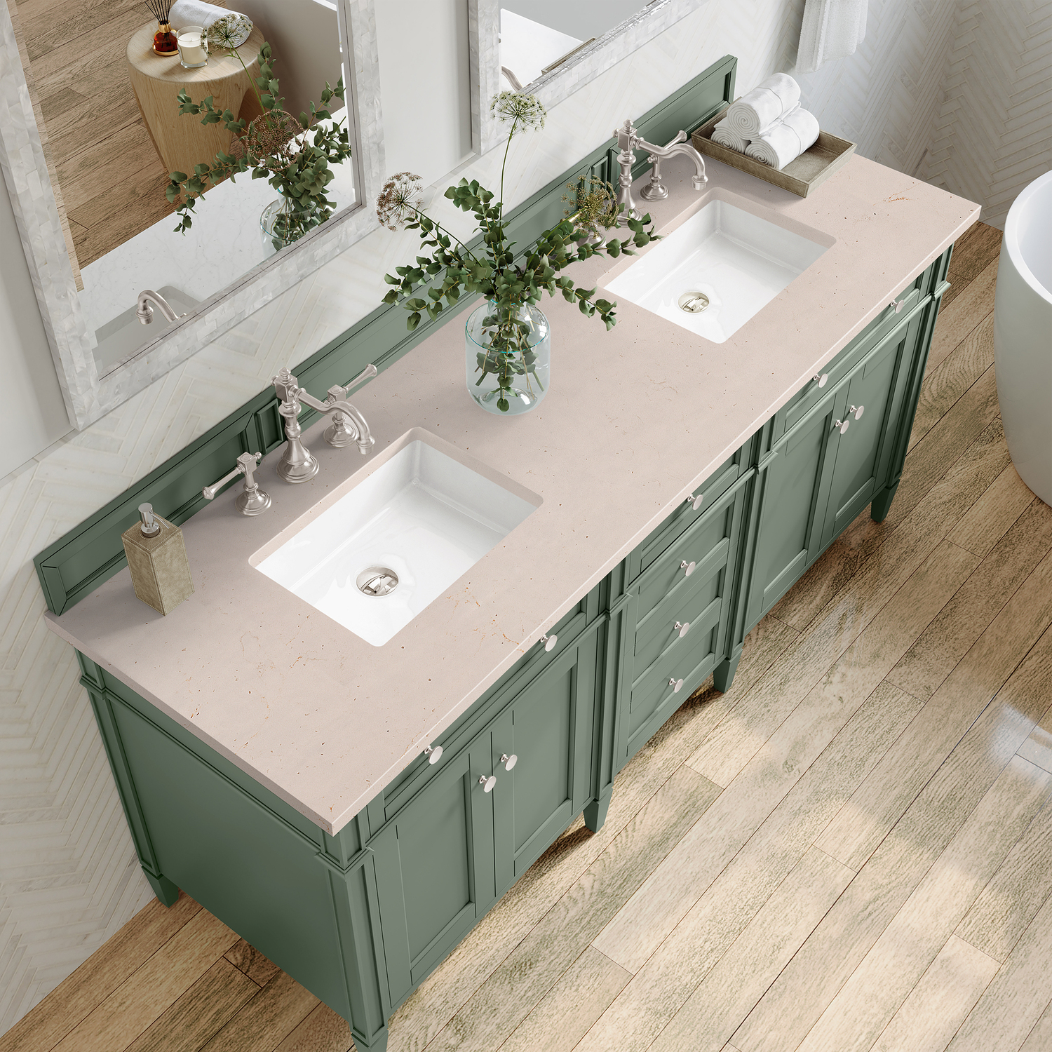 James Martin Brittany 72 inch Double Bathroom Vanity, Smokey Celadon w/ 3 CM Eternal Marfil Top 650-V72-SC-3EMR