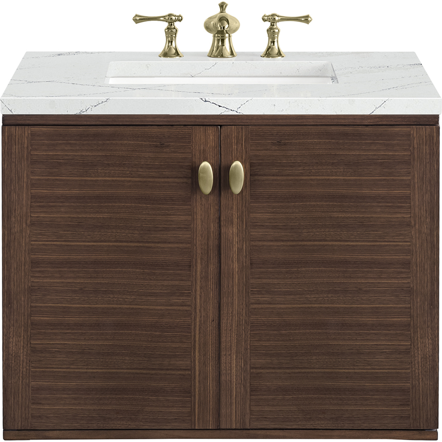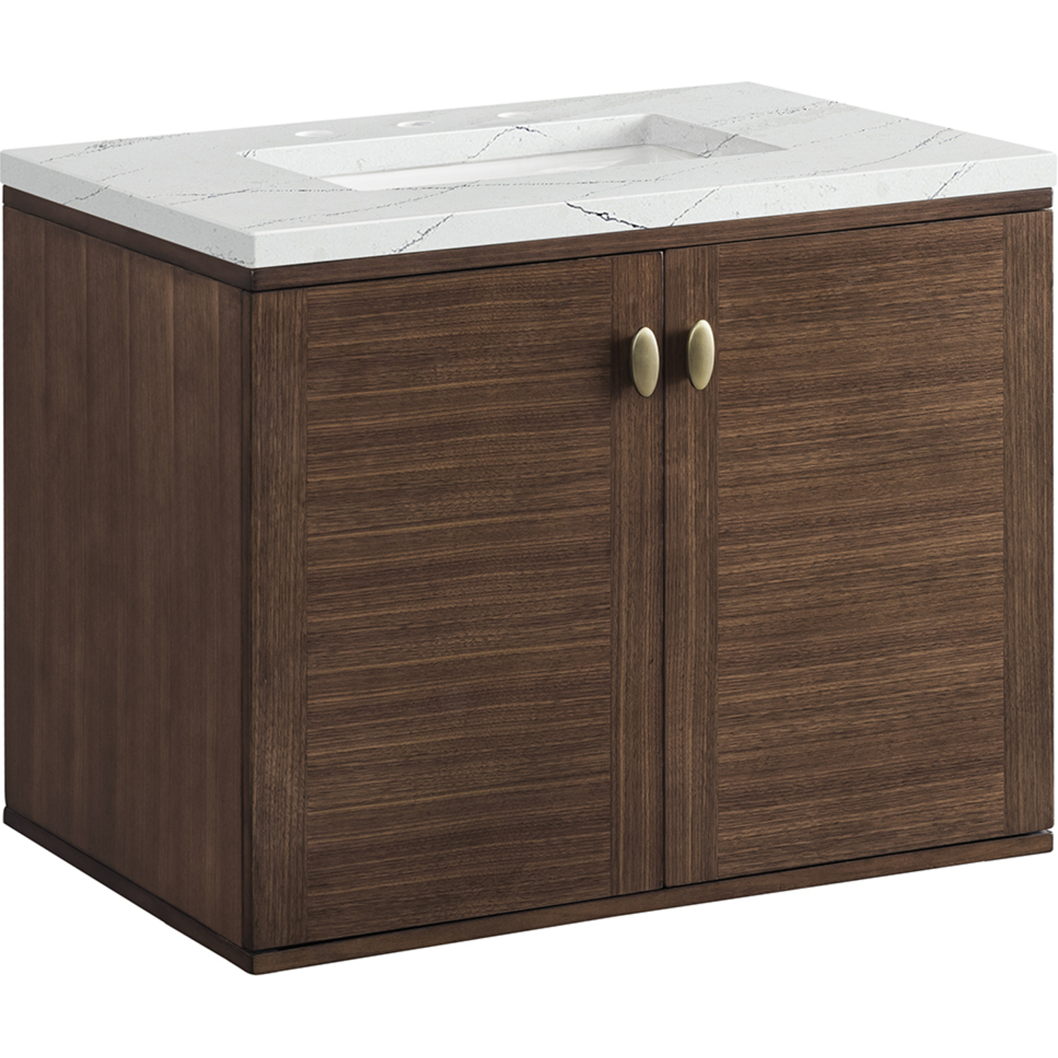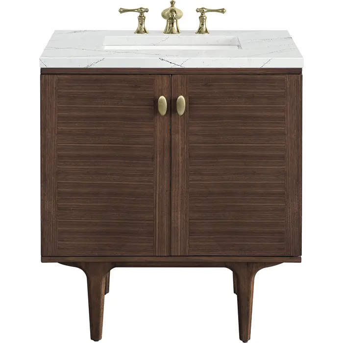 James Martin Amberly 30 inch Single Bathroom Vanity, Mid-Century Walnut w/ 3 CM Ethereal Noctis Top 670-V30-WLT-3ENC