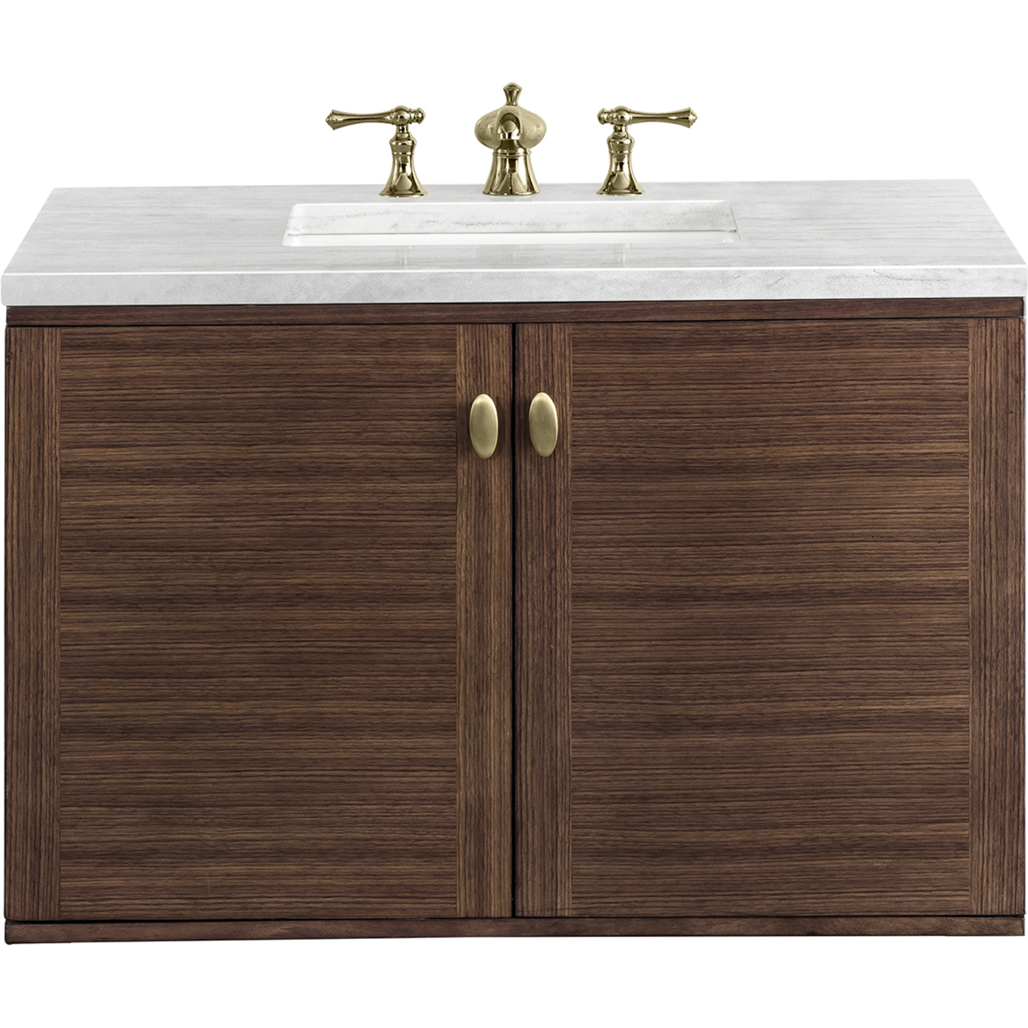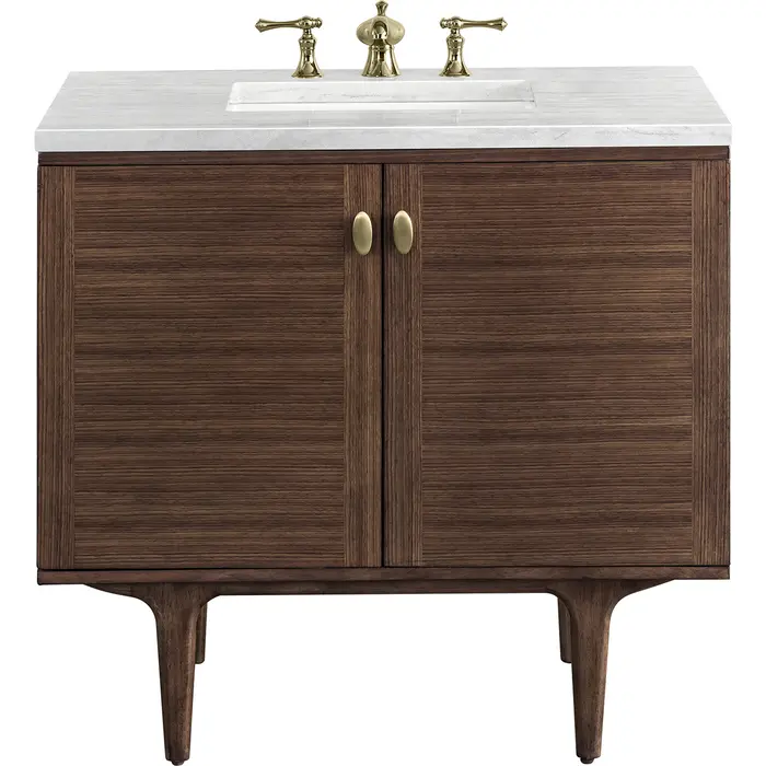 James Martin Amberly 36 inch Single Bathroom Vanity, Mid-Century Walnut w/ 3 CM Arctic Fall Top 670-V36-WLT-3AF