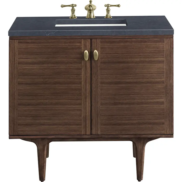 James Martin Amberly 36 inch Single Bathroom Vanity, Mid-Century Walnut w/ 3 CM Charcoal Soapstone Top 670-V36-WLT-3CSP