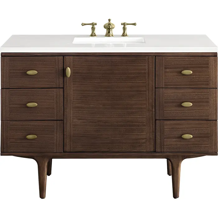 James Martin Amberly 48 inch Single Bathroom Vanity, Mid-Century Walnut w/ 3 CM White Zeus Top 670-V48-WLT-3WZ