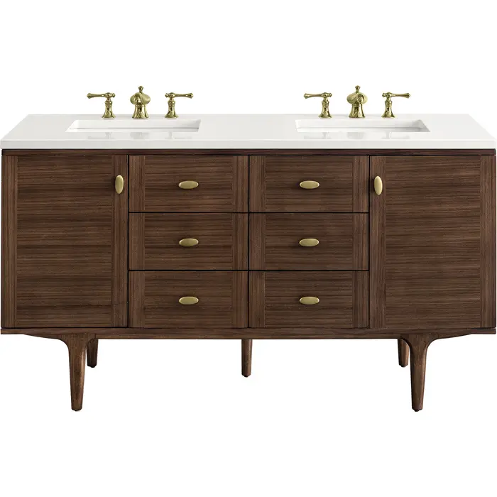 James Martin Amberly 60 inch Double Bathroom Vanity, Mid-Century Walnut w/ 3 CM White Zeus Top 670-V60D-WLT-3WZ