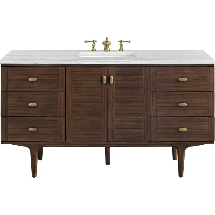 James Martin Amberly 60 inch Single Bathroom Vanity, Mid-Century Walnut w/ 3 CM Arctic Fall Top 670-V60S-WLT-3AF