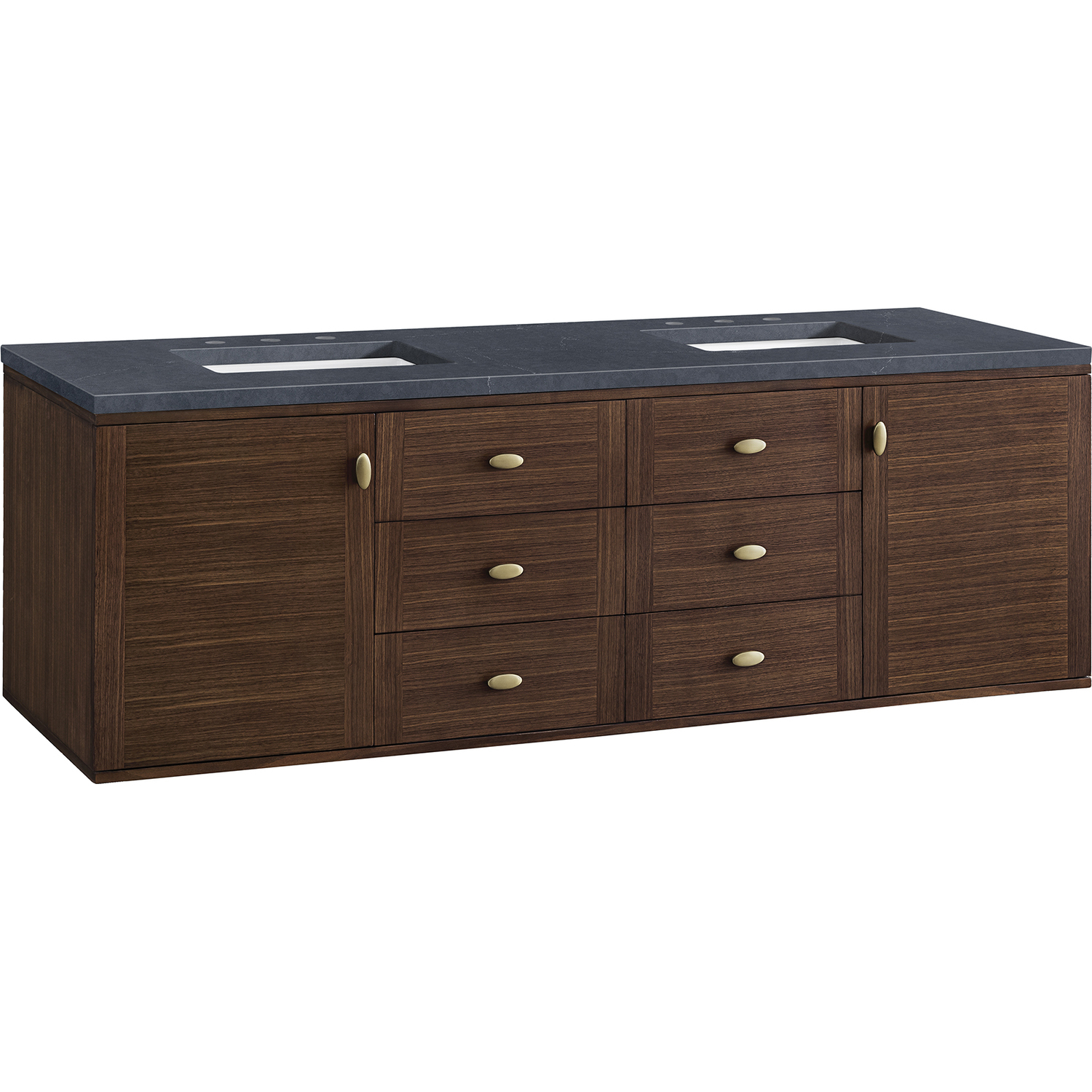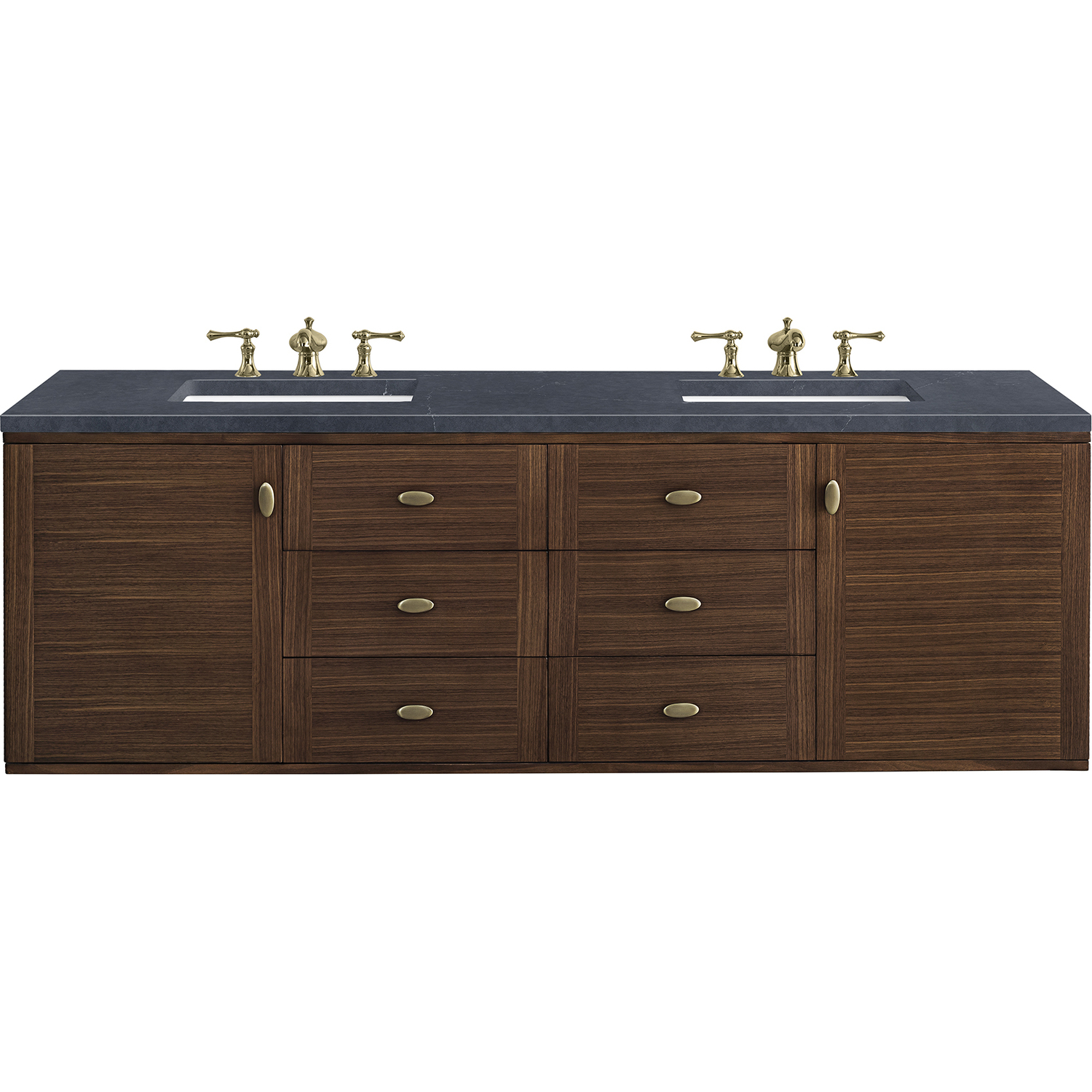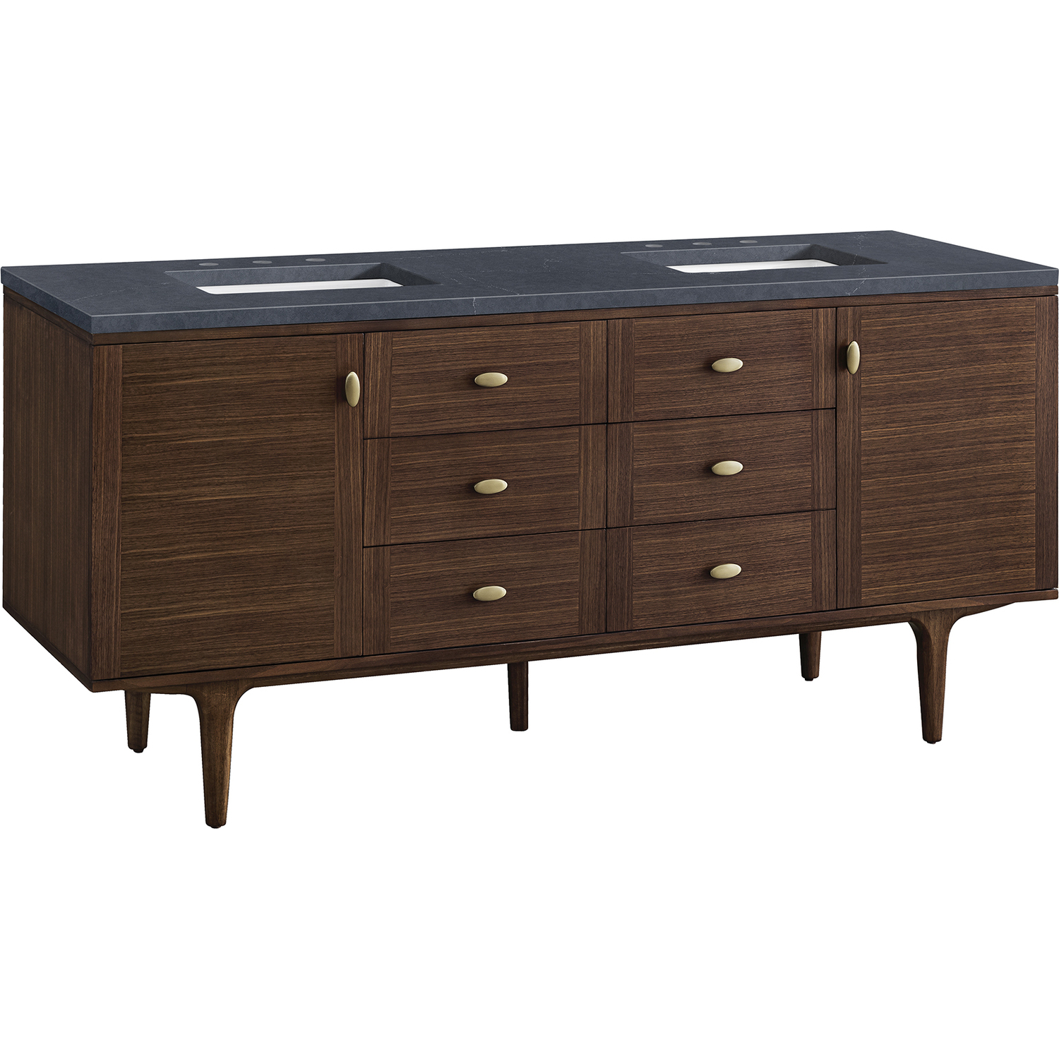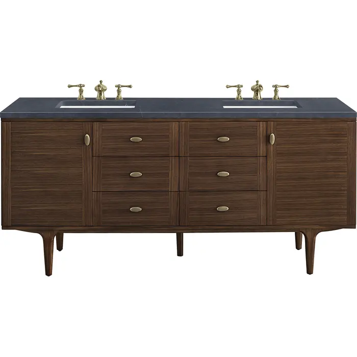 James Martin Amberly 72 inch Double Bathroom Vanity, Mid-Century Walnut w/ 3 CM Charcoal Soapstone Top 670-V72-WLT-3CSP