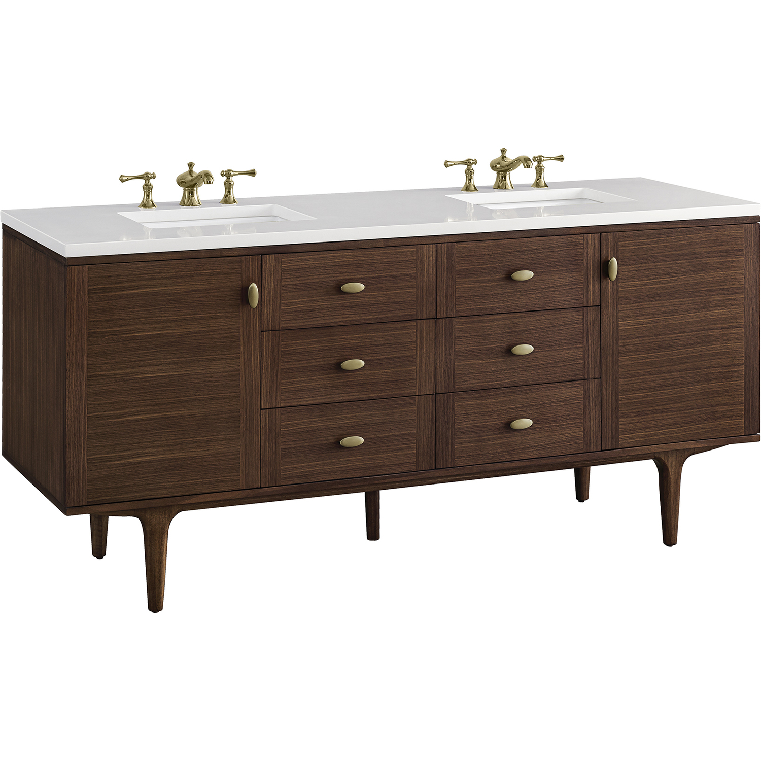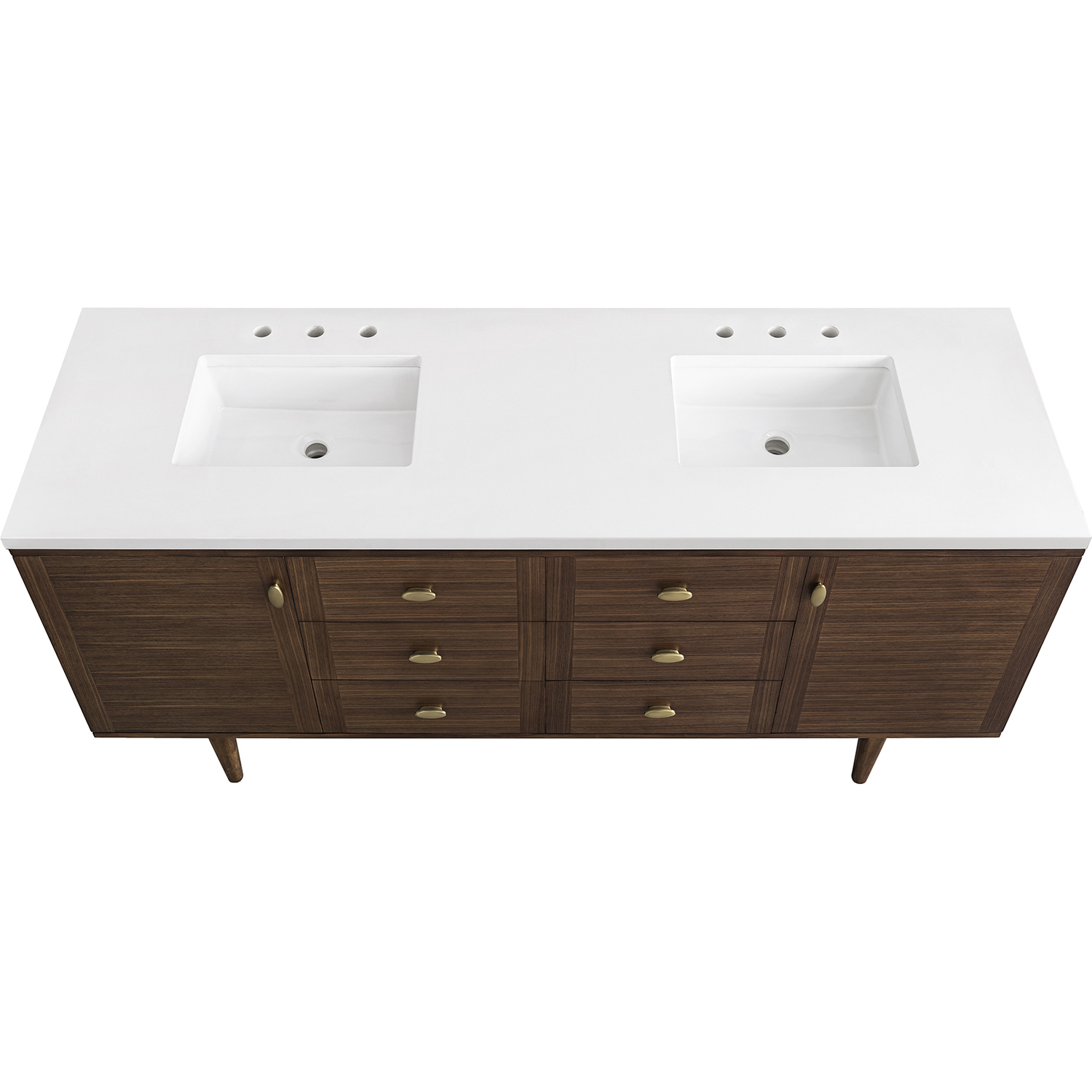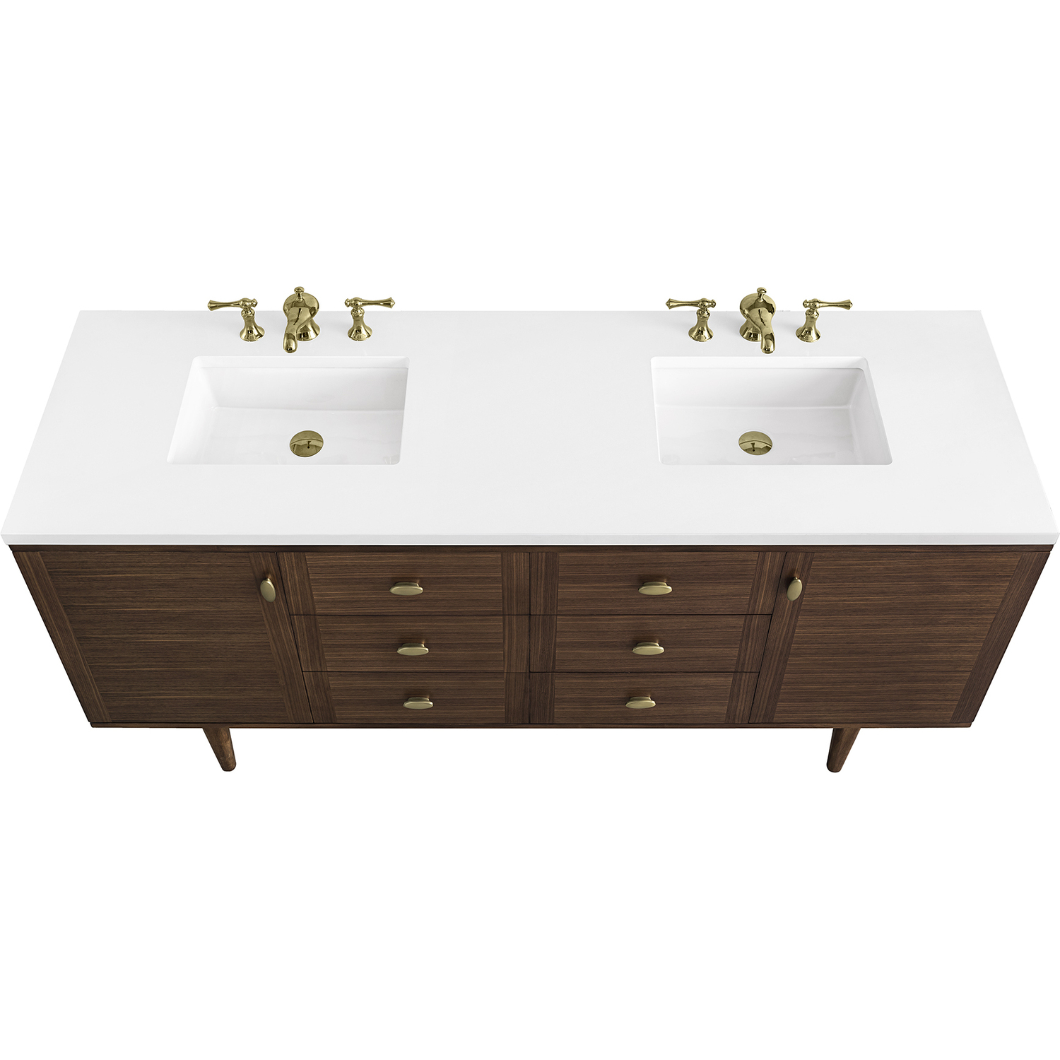 James Martin Amberly 72 inch Double Bathroom Vanity, Mid-Century Walnut w/ 3 CM White Zeus Top 670-V72-WLT-3WZ