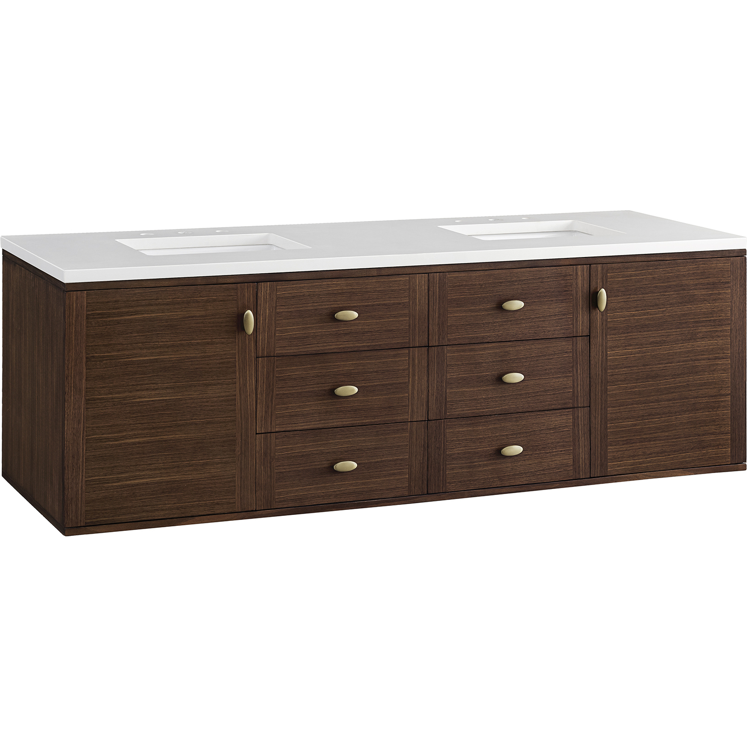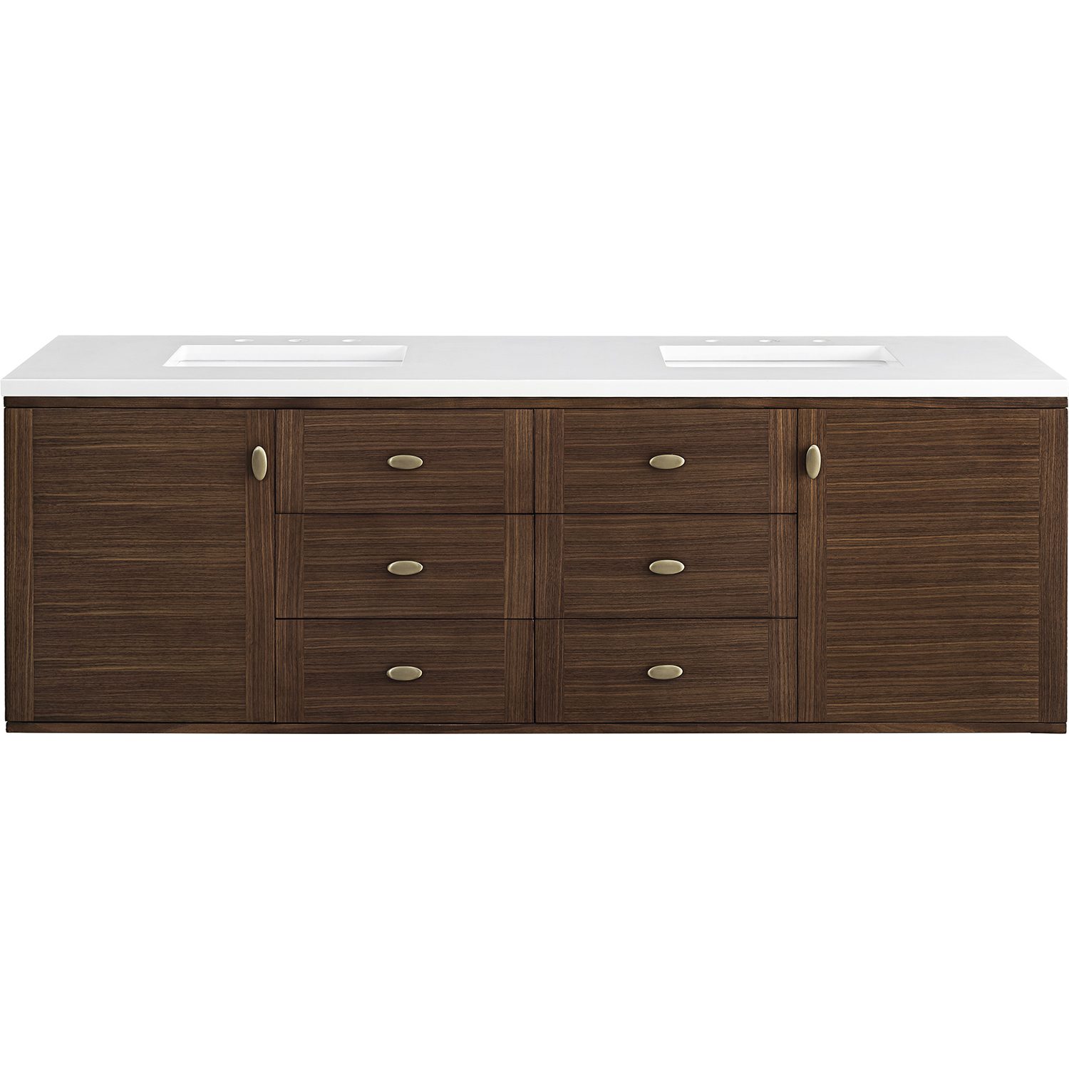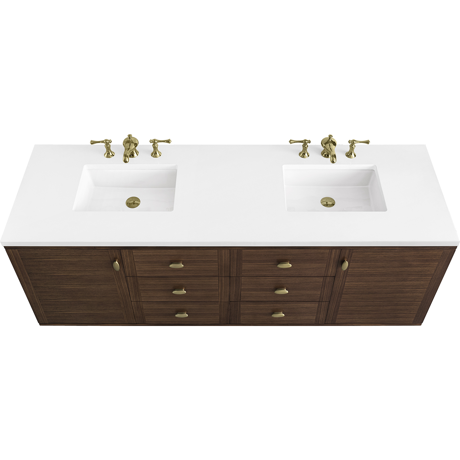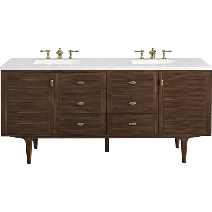 James Martin Amberly 72 inch Double Bathroom Vanity, Mid-Century Walnut w/ 3 CM White Zeus Top 670-V72-WLT-3WZ