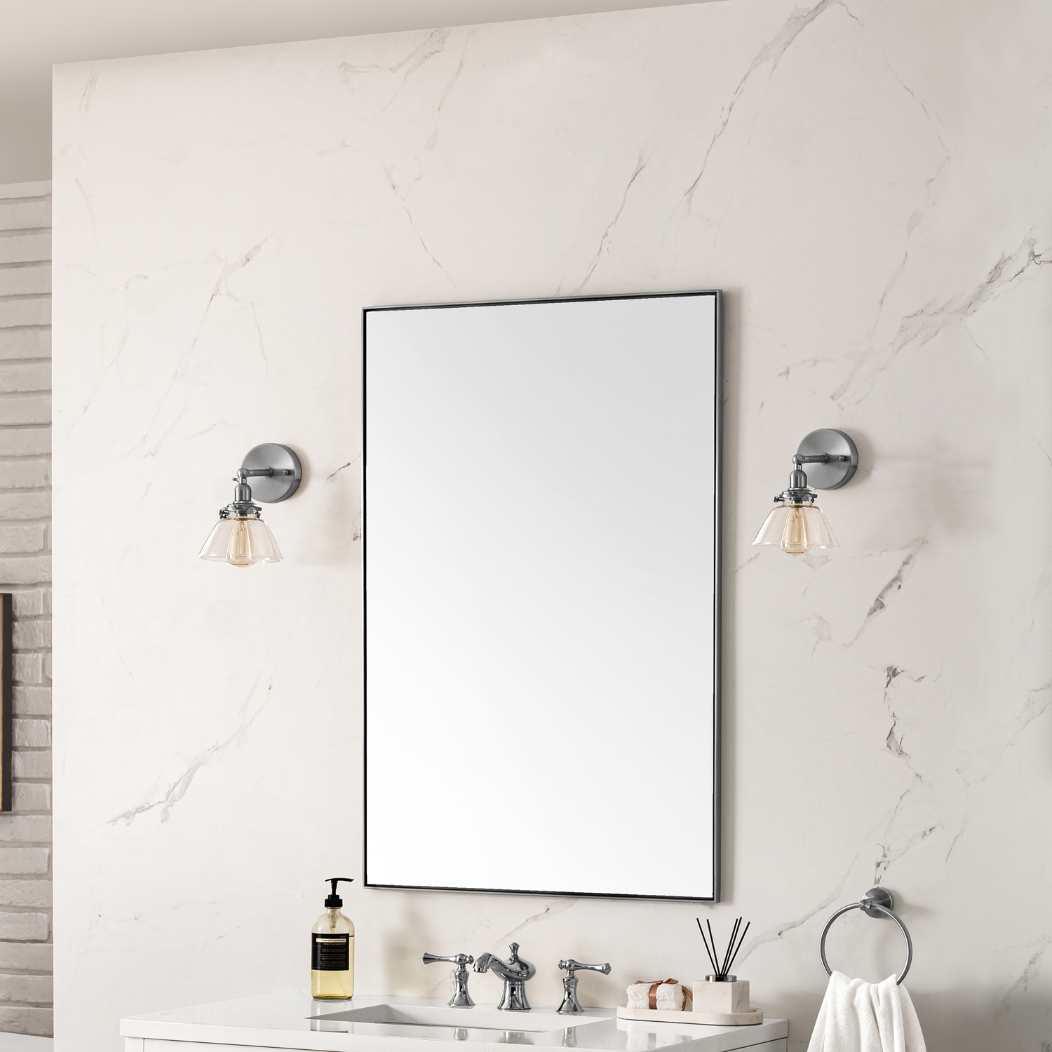 Inspired by modern framed canvas art, the Rohe 26" Rectangular Mirror appears to float inside the classic Satin Nickel metal frame, adding visual interest to the beautifully bevel-cut glass. Designed for versatility, this mirror can be hung vertically or horizontally, and comes with mounting hardware for your convenience. The Rohe's simple, yet elegant design and sophisticated finish make it the perfect accent for your bathroom and any other living spaces in your home.26" W x 3/4" D x 40" H Rectangular MirrorSatin Nickel finish over stainless steelMounting hardware included for ease of installationAvailable in three finish optionsThis mirror is designed to be hung horizontally or verticallyThe Rohe Mirror Collection by James Martin Vanities offers an elegant selection of mirrors that blend timeless sophistication with practical versatility. Available in seven sizes, four metal finishes, and four unique shapes - rectangle, octagon, round, and arched - the Rohe mirror caters to a variety of design preferences and aesthetics, ensuring the perfect fit for your home. Each mirror is crafted with meticulous attention to detail, featuring hand-finished frames and beveled glass for a premium look. The Rohe mirrors include recessed keyhole-style hangers, allowing for secure mounting. Mounting hardware is included for your convenience. Whether you're searching for a mirror to complement a vanity or a statement piece for your walls, the Rohe Mirror Collection offers a versatile and stylish solution to elevate any space.1 year warranty against manufacturer's defects. We will repair or replace any defective product, if the product is defective in material or workmanship at our discretion. No warranty is expressed or implied regarding damages resulting from consumer misuse.