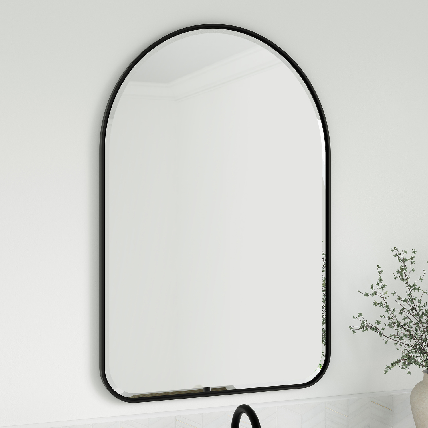 Inspired by modern framed canvas art, the Rohe 24" Arched Mirror appears to float inside the modern Matte Black metal frame, adding visual interest to the beautifully bevel-cut glass. Designed to be hung vertically, this mirror comes with mounting hardware for your convenience. The Rohe's simple, yet elegant design and sophisticated finish make it the perfect accent for your bathroom and any other living spaces in your home.24" W x 3/4" D x 36" H Arched MirrorMatte Black finish over stainless steelMounting hardware included for ease of installationAvailable in three finish optionsThis mirror is designed to be hung verticallyThe Rohe Mirror Collection by James Martin Vanities offers an elegant selection of mirrors that blend timeless sophistication with practical versatility. Available in seven sizes, four metal finishes, and four unique shapes - rectangle, octagon, round, and arched - the Rohe mirror caters to a variety of design preferences and aesthetics, ensuring the perfect fit for your home. Each mirror is crafted with meticulous attention to detail, featuring hand-finished frames and beveled glass for a premium look. The Rohe mirrors include recessed keyhole-style hangers, allowing for secure mounting. Mounting hardware is included for your convenience. Whether you're searching for a mirror to complement a vanity or a statement piece for your walls, the Rohe Mirror Collection offers a versatile and stylish solution to elevate any space.1 year warranty against manufacturer's defects. We will repair or replace any defective product, if the product is defective in material or workmanship at our discretion. No warranty is expressed or implied regarding damages resulting from consumer misuse.