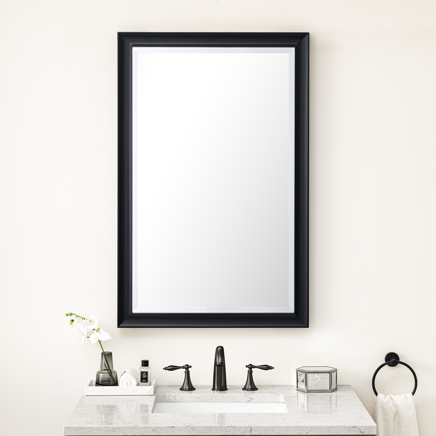 The simple sculpted detail and subtle concave frame of the Glenbrooke 26" Rectangular Mirror adds a modern touch to a timeless look. Designed to coordinate across several James Martin Vanities collections, this classically elegant mirror in Black Onyx finish is the perfect addition to any room of your home. Crafted using premium bevel-cut glass, the Glenbrooke features two sets of recessed keyhole brackets, which allow for versatile installation - either vertical or horizontal. For your convenience, mounting hardware is included.26" W x 7/8" D x 40" H Rectangular MirrorBlack Onyx finishMounting hardware included for ease of installationAvailable in several of our most popular finish optionsThis mirror may be hung vertically or horizontally1" Bevel cut glassThe sculpted, curved detailing of Glenbrooke’s frame adds a modern touch to a timeless look. Designed to coordinate across several James Martin Vanities collections, this classically elegant mirror is available in several of our most popular made-to-match finishes. Crafted using premium bevel-cut glass, the Glenbrooke is the perfect accent for any room in your home. Two sets of recessed, premium keyhole brackets allow for versatile installation.1 year warranty against manufacturer's defects. We will repair or replace any defective product, if the product is defective in material or workmanship at our discretion. No warranty is expressed or implied regarding damages resulting from consumer misuse.