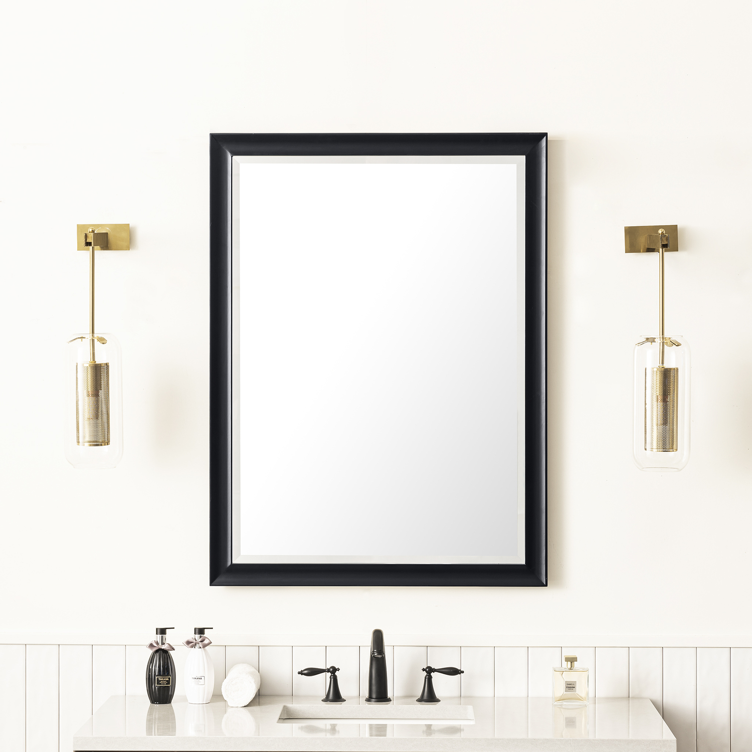 The simple sculpted detail and subtle concave frame of the Glenbrooke 30" Rectangular Mirror add a modern touch to a timeless look. Designed to coordinate across several James Martin Vanities collections, this classically elegant mirror in Black Onyx finish is the perfect addition to any room of your home. Crafted using premium bevel-cut glass, the Glenbrooke features two sets of recessed keyhole brackets, which allow for versatile installation - either vertical or horizontal. For your convenience, mounting hardware is included.30" W x 7/8" D x 40" H Rectangular MirrorBlack Onyx finishMounting hardware included for ease of installationAvailable in several of our most popular finish optionsThis mirror may be hung vertically or horizontally1" Bevel cut glassThe sculpted, curved detailing of Glenbrooke’s frame adds a modern touch to a timeless look. Designed to coordinate across several James Martin Vanities collections, this classically elegant mirror is available in several of our most popular made-to-match finishes. Crafted using premium bevel-cut glass, the Glenbrooke is the perfect accent for any room in your home. Two sets of recessed, premium keyhole brackets allow for versatile installation.1 year warranty against manufacturer's defects. We will repair or replace any defective product, if the product is defective in material or workmanship at our discretion. No warranty is expressed or implied regarding damages resulting from consumer misuse.