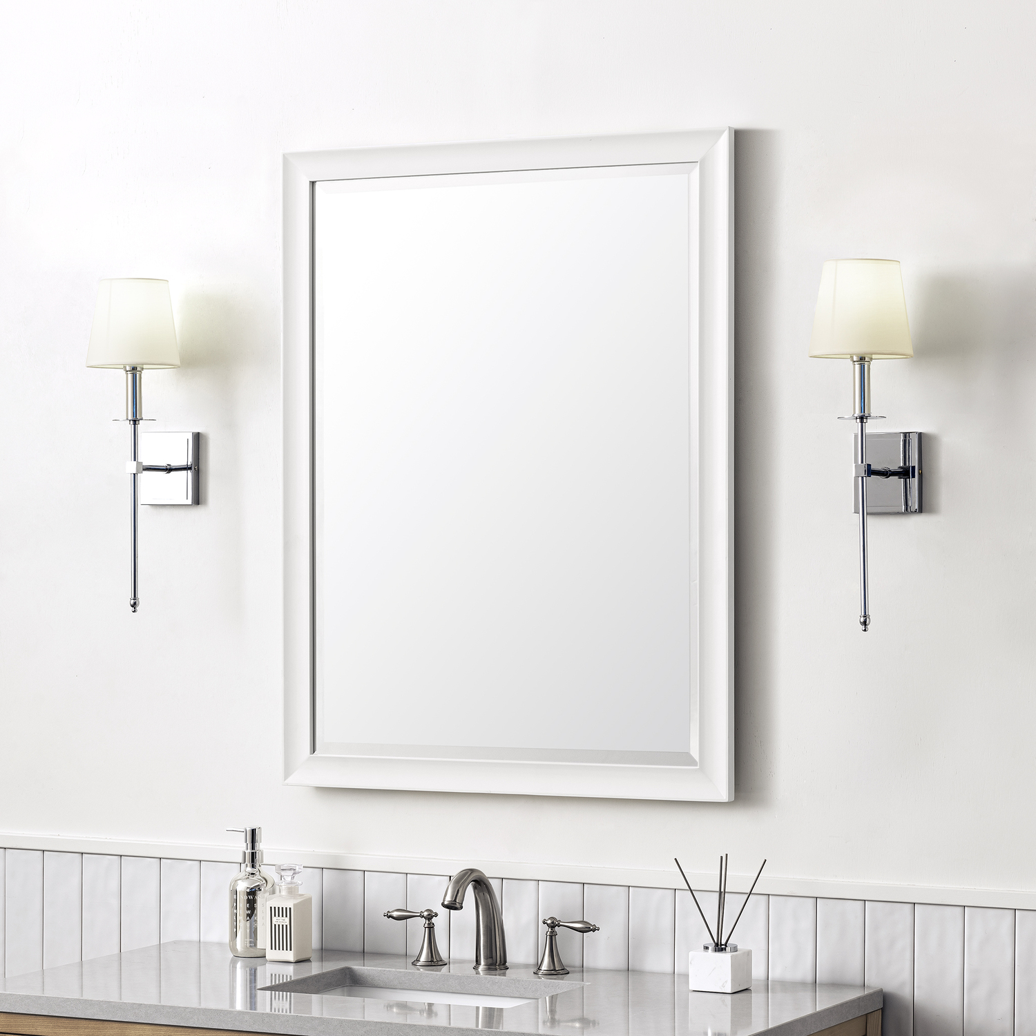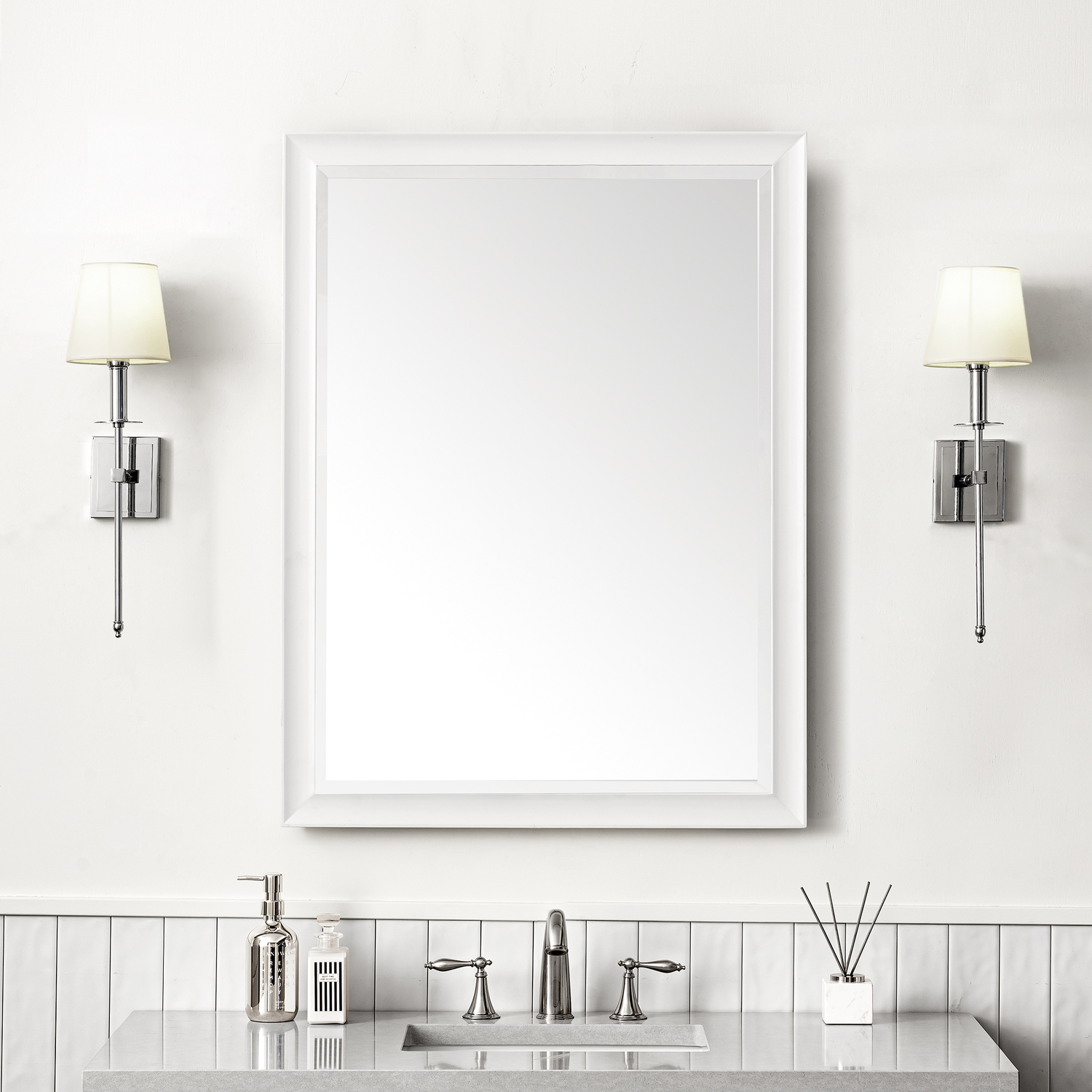The simple sculpted detail and subtle concave frame of the Glenbrooke 30" Rectangular Mirror add a modern touch to a timeless look. Designed to coordinate across several James Martin Vanities collections, this classically elegant mirror in Bright White finish is the perfect addition to any room of your home. Crafted using premium bevel-cut glass, the Glenbrooke features two sets of recessed keyhole brackets, which allow for versatile installation - either vertical or horizontal. For your convenience, mounting hardware is included.30" W x 7/8" D x 40" H Rectangular MirrorBright White finishMounting hardware included for ease of installationAvailable in several of our most popular finish optionsThis mirror may be hung vertically or horizontally1" Bevel cut glassThe sculpted, curved detailing of Glenbrooke’s frame adds a modern touch to a timeless look. Designed to coordinate across several James Martin Vanities collections, this classically elegant mirror is available in several of our most popular made-to-match finishes. Crafted using premium bevel-cut glass, the Glenbrooke is the perfect accent for any room in your home. Two sets of recessed, premium keyhole brackets allow for versatile installation.1 year warranty against manufacturer's defects. We will repair or replace any defective product, if the product is defective in material or workmanship at our discretion. No warranty is expressed or implied regarding damages resulting from consumer misuse.