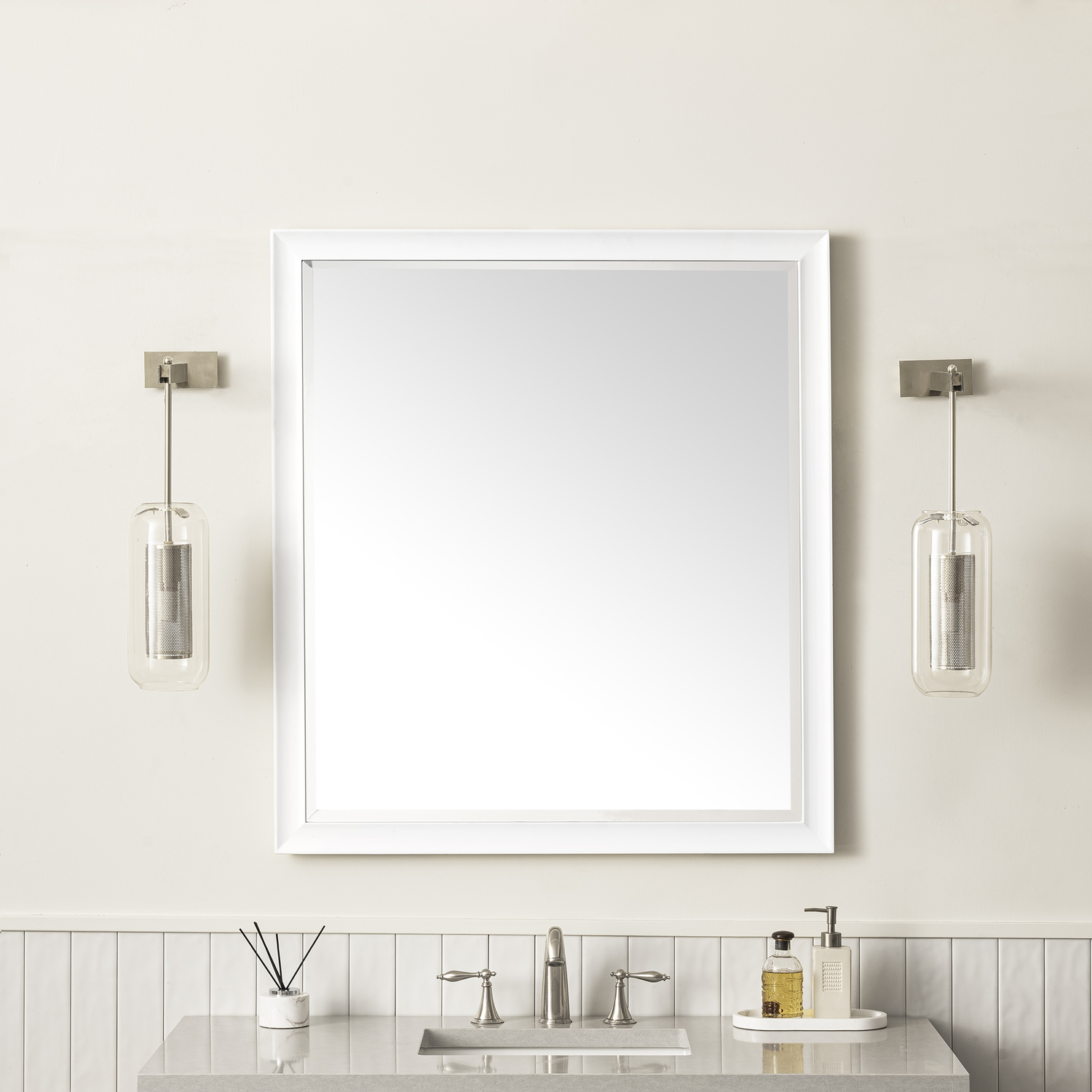 The simple sculpted detail and subtle concave frame of the Glenbrooke 36" Rectangular Mirror add a modern touch to a timeless look. Designed to coordinate across several James Martin Vanities collections, this classically elegant mirror in Bright White finish is the perfect addition to any room of your home. Crafted using premium bevel-cut glass, the Glenbrooke features two sets of recessed keyhole brackets, which allow for versatile installation - either vertical or horizontal. For your convenience, mounting hardware is included.36" W x 7/8" D x 40" H Rectangular MirrorBright White finishMounting hardware included for ease of installationAvailable in several of our most popular finish optionsThis mirror may be hung vertically or horizontally1" Bevel cut glassThe sculpted, curved detailing of Glenbrooke’s frame adds a modern touch to a timeless look. Designed to coordinate across several James Martin Vanities collections, this classically elegant mirror is available in several of our most popular made-to-match finishes. Crafted using premium bevel-cut glass, the Glenbrooke is the perfect accent for any room in your home. Two sets of recessed, premium keyhole brackets allow for versatile installation.1 year warranty against manufacturer's defects. We will repair or replace any defective product, if the product is defective in material or workmanship at our discretion. No warranty is expressed or implied regarding damages resulting from consumer misuse.