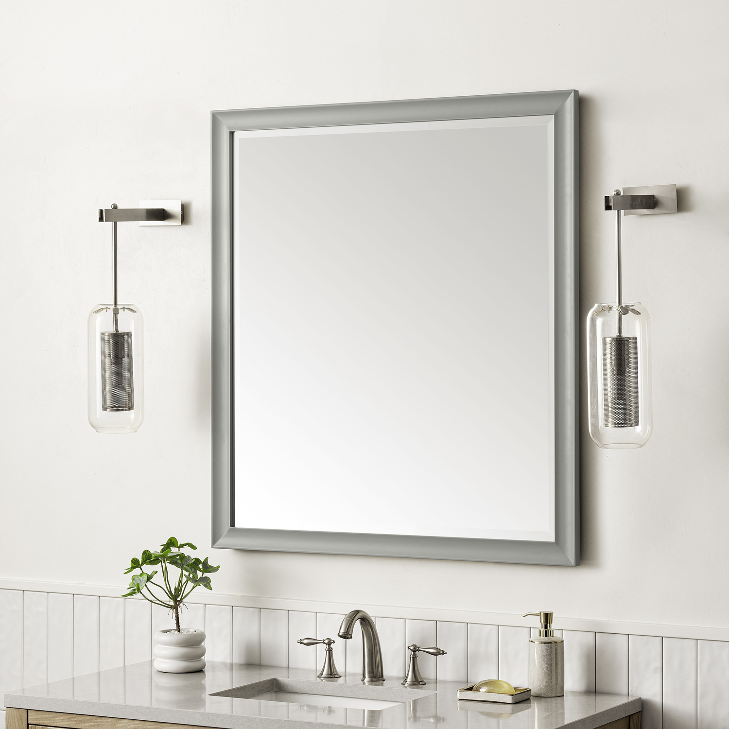The simple sculpted detail and subtle concave frame of the Glenbrooke 36" Rectangular Mirror add a modern touch to a timeless look. Designed to coordinate across several James Martin Vanities collections, this classically elegant mirror in Urban Gray finish is the perfect addition to any room of your home. Crafted using premium bevel-cut glass, the Glenbrooke features two sets of recessed keyhole brackets, which allow for versatile installation - either vertical or horizontal. For your convenience, mounting hardware is included.36" W x 7/8" D x 40" H Rectangular MirrorUrban Gray finishMounting hardware included for ease of installationAvailable in several of our most popular finish optionsThis mirror may be hung vertically or horizontally1" Bevel cut glassThe sculpted, curved detailing of Glenbrooke’s frame adds a modern touch to a timeless look. Designed to coordinate across several James Martin Vanities collections, this classically elegant mirror is available in several of our most popular made-to-match finishes. Crafted using premium bevel-cut glass, the Glenbrooke is the perfect accent for any room in your home. Two sets of recessed, premium keyhole brackets allow for versatile installation.1 year warranty against manufacturer's defects. We will repair or replace any defective product, if the product is defective in material or workmanship at our discretion. No warranty is expressed or implied regarding damages resulting from consumer misuse.