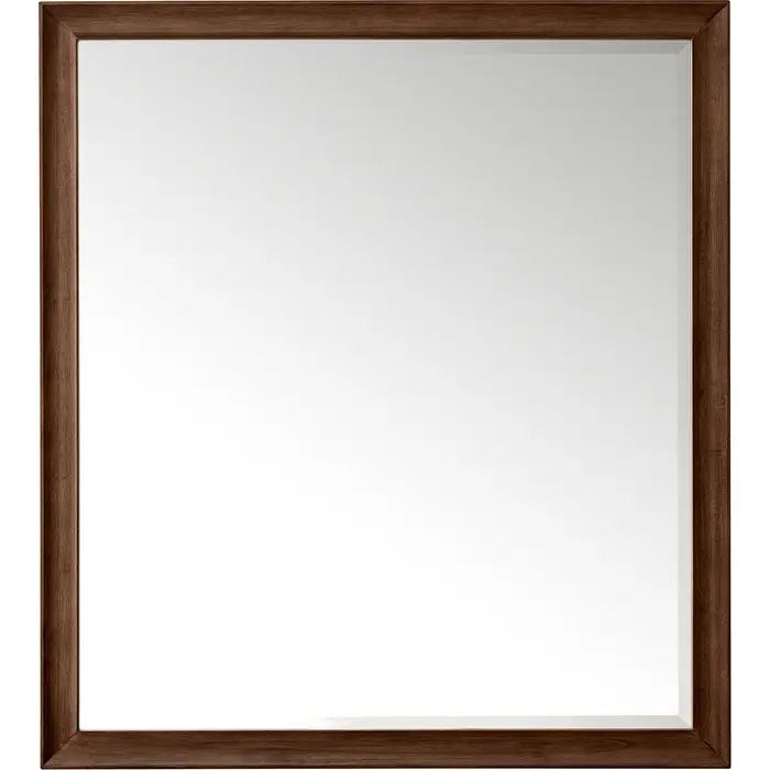 The simple sculpted detail and subtle concave frame of the Glenbrooke 36" Rectangular Mirror add a modern touch to a timeless look. Designed to coordinate across several James Martin Vanities collections, this classically elegant mirror in Mid-Century Walnut finish is the perfect addition to any room of your home. Crafted using premium bevel-cut glass, the Glenbrooke features two sets of recessed keyhole brackets, which allow for versatile installation - either vertical or horizontal. For your convenience, mounting hardware is included.36" W x 7/8" D x 40" H Rectangular MirrorMid-Century Walnut finishMounting hardware included for ease of installationAvailable in several of our most popular finish optionsThis mirror may be hung vertically or horizontally1" Bevel cut glassThe sculpted, curved detailing of Glenbrooke’s frame adds a modern touch to a timeless look. Designed to coordinate across several James Martin Vanities collections, this classically elegant mirror is available in several of our most popular made-to-match finishes. Crafted using premium bevel-cut glass, the Glenbrooke is the perfect accent for any room in your home. Two sets of recessed, premium keyhole brackets allow for versatile installation.1 year warranty against manufacturer's defects. We will repair or replace any defective product, if the product is defective in material or workmanship at our discretion. No warranty is expressed or implied regarding damages resulting from consumer misuse.