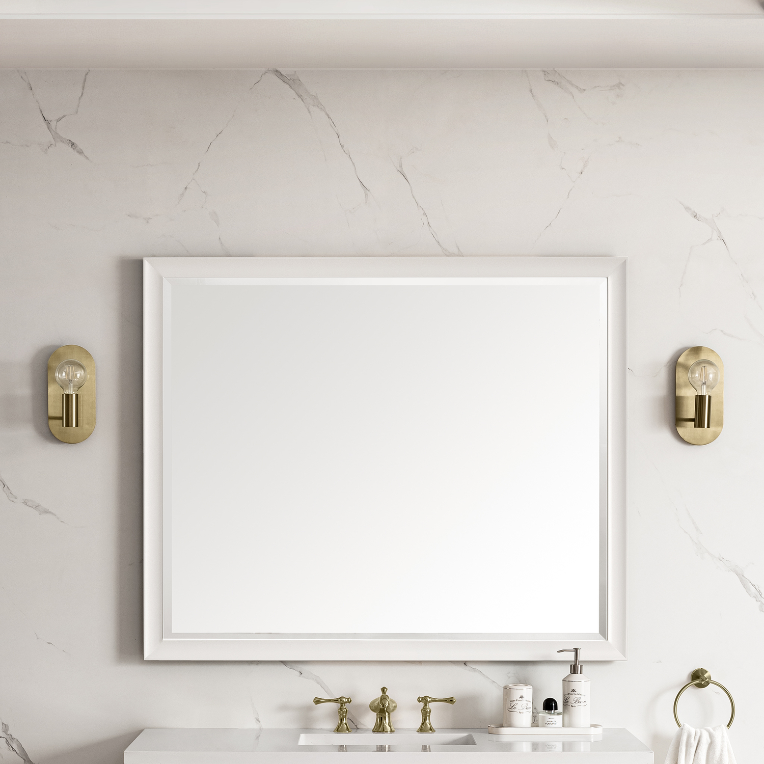 The simple sculpted detail and subtle concave frame of the Glenbrooke 48" Rectangular Mirror add a modern touch to a timeless look. Designed to coordinate across several James Martin Vanities collections, this classically elegant mirror in Bright White finish is the perfect addition to any room of your home. Crafted using premium bevel-cut glass, the Glenbrooke features two sets of recessed keyhole brackets, which allow for versatile installation - either vertical or horizontal. For your convenience, mounting hardware is included.48" W x 7/8" D x 40"' H Rectangular MirrorBright White finishMounting hardware included for ease of installationAvailable in several of our most popular finish optionsThis mirror may be hung vertically or horizontally1" Bevel cut glassThe sculpted, curved detailing of Glenbrooke’s frame adds a modern touch to a timeless look. Designed to coordinate across several James Martin Vanities collections, this classically elegant mirror is available in several of our most popular made-to-match finishes. Crafted using premium bevel-cut glass, the Glenbrooke is the perfect accent for any room in your home. Two sets of recessed, premium keyhole brackets allow for versatile installation.1 year warranty against manufacturer's defects. We will repair or replace any defective product, if the product is defective in material or workmanship at our discretion. No warranty is expressed or implied regarding damages resulting from consumer misuse.