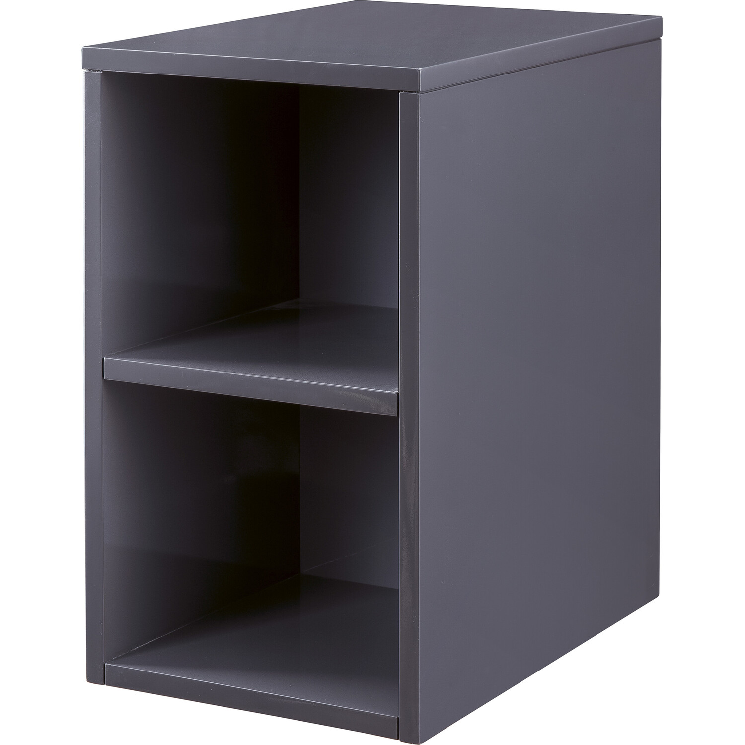 - The Storage cabinet comes in three finishes: glossy white, modern grey glossy, or mid-century walnut