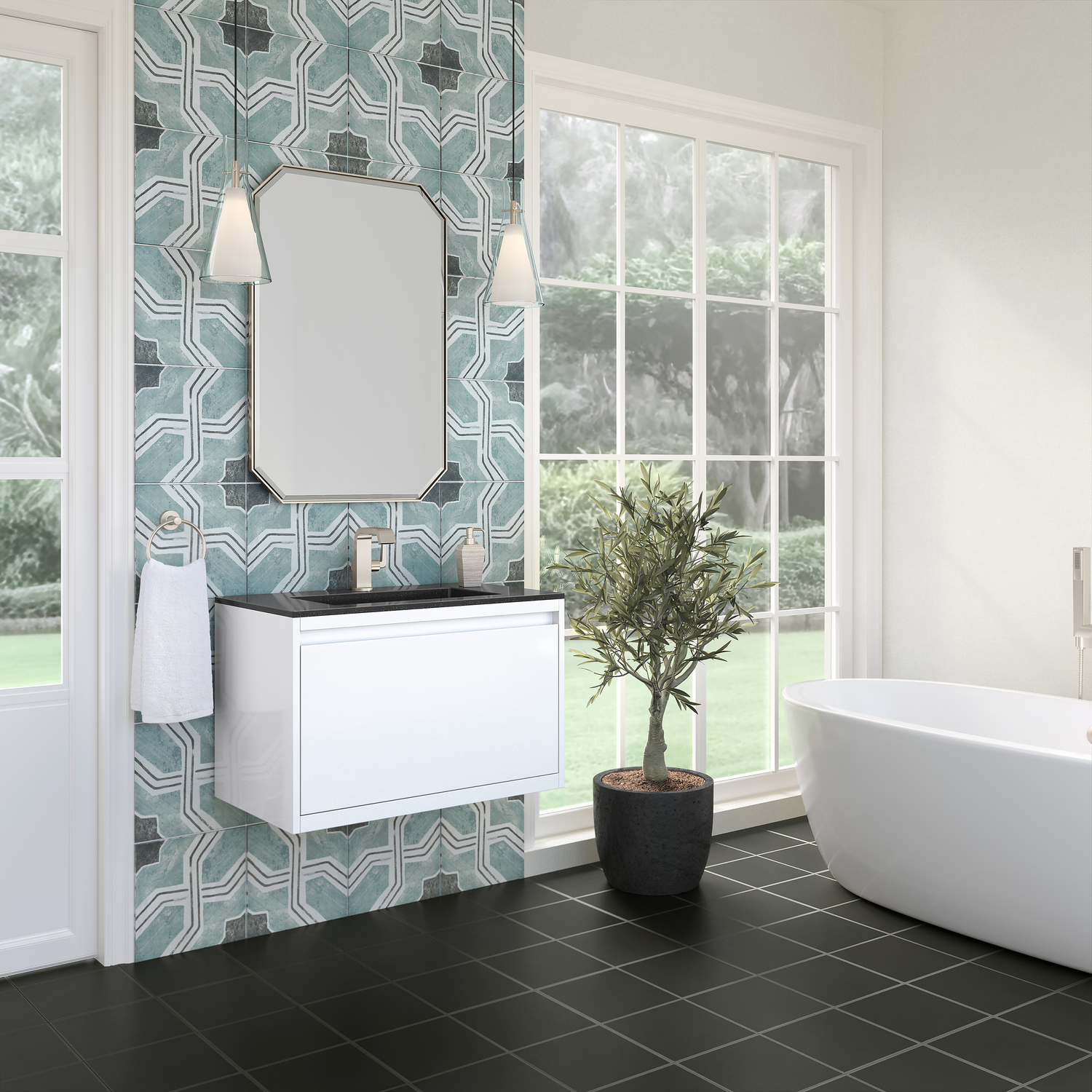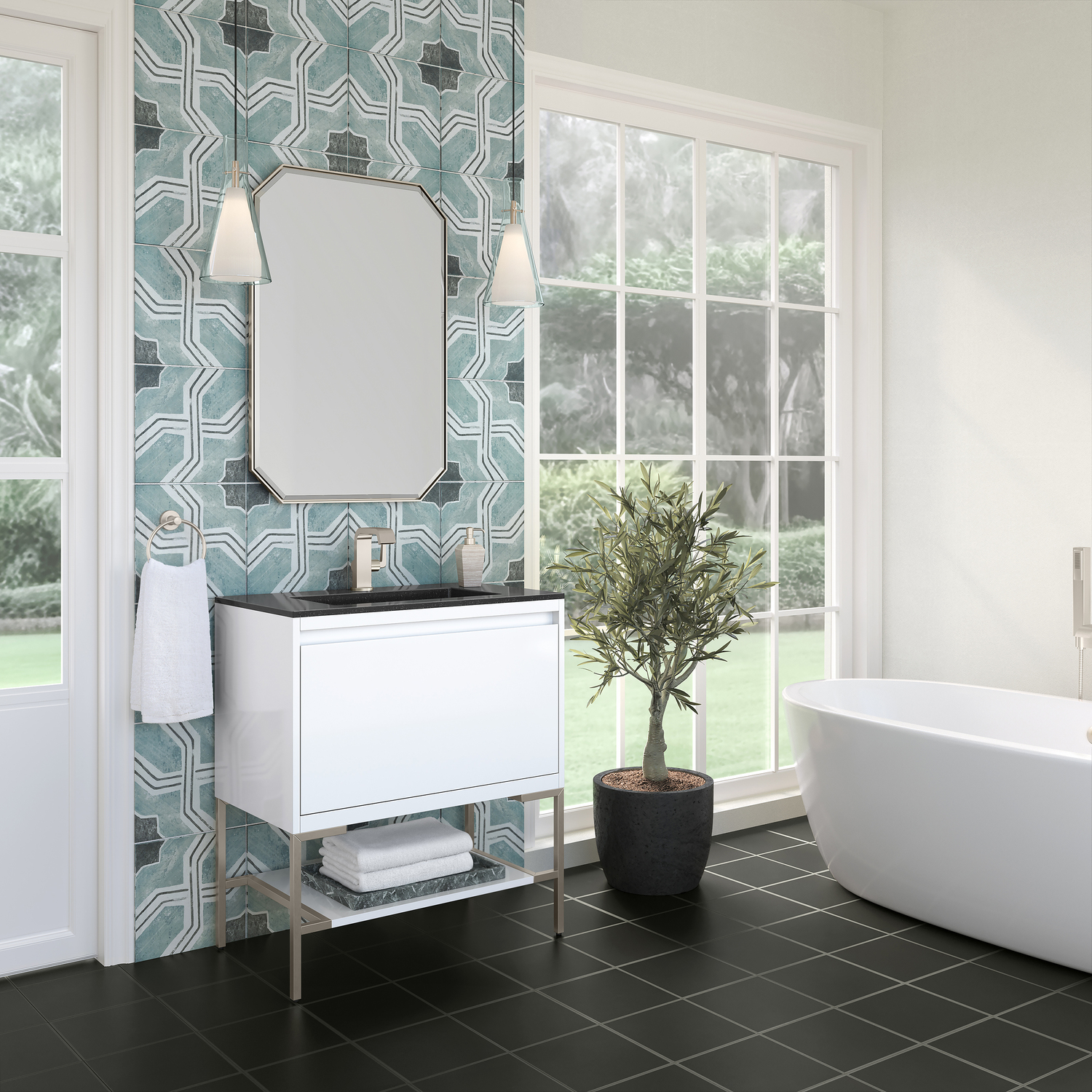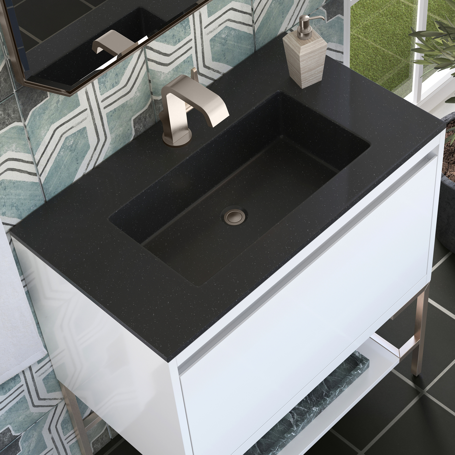 The Mantova 31.5” Glossy White Single Vanity by James Martin Vanities will elevate your space by adding a touch of timeless décor to your bathroom. This vanity combines a cutting-edge design with pristine craftmanship to bring your bathroom a clean modern look providing you with both style and functionality. Generous storage features include soft-close drawers with one removable drawer organizer. The look is completed with Brushed Nickel finished Stainless Steel Base and a Charcoal Black Composite Stone integrated top and sink.Glossy White single vanity with two interior drawers and lower open shelvingHardware/Stand Finish: Brushed NickelSolid kiln-dried Grade A hardwoodCabinet is finished inside and out with a premium undercoat finish for superior moisture and UV resistanceSoft-close undermount drawer glidesDrawer bottoms are lined with our signature brushed aluminum laminateCharcoal Black Composite Stone integrated top and sink includedCountertop is pre-drilled for one single hole faucetFaucet sold separatelyIdeal for the modern home, the Mantova Collection by James Martin Vanities offers a clean, contemporary look. Superbly crafted out of durable wood, it is immediately recognizable by its inherent beauty and durability. A true masterpiece of elegance and style, that is available in either a freestanding or wall-mounted edition. Each drawer is soft closing with ample storage room, that does not impede the design aesthetic of the overall piece. Each vanity comes with your choice of composite sink color either a Glossy White or a Charcoal Black Matte, as well as two options in cabinet finishes, Mid-Century Walnut or Glossy White. To complete the look, choose between three options for the metal base; Brushed Nickel, Champagne Brass, or Matte Black. The Mantova collection is available in multiple sizes and will work with a wide variety of different styles and decors.1 year warranty against manufacturer's defects. We will repair or replace any defective product, if the product is defective in material or workmanship at our discretion. No warranty is expressed or implied regarding damages resulting from consumer misuse.