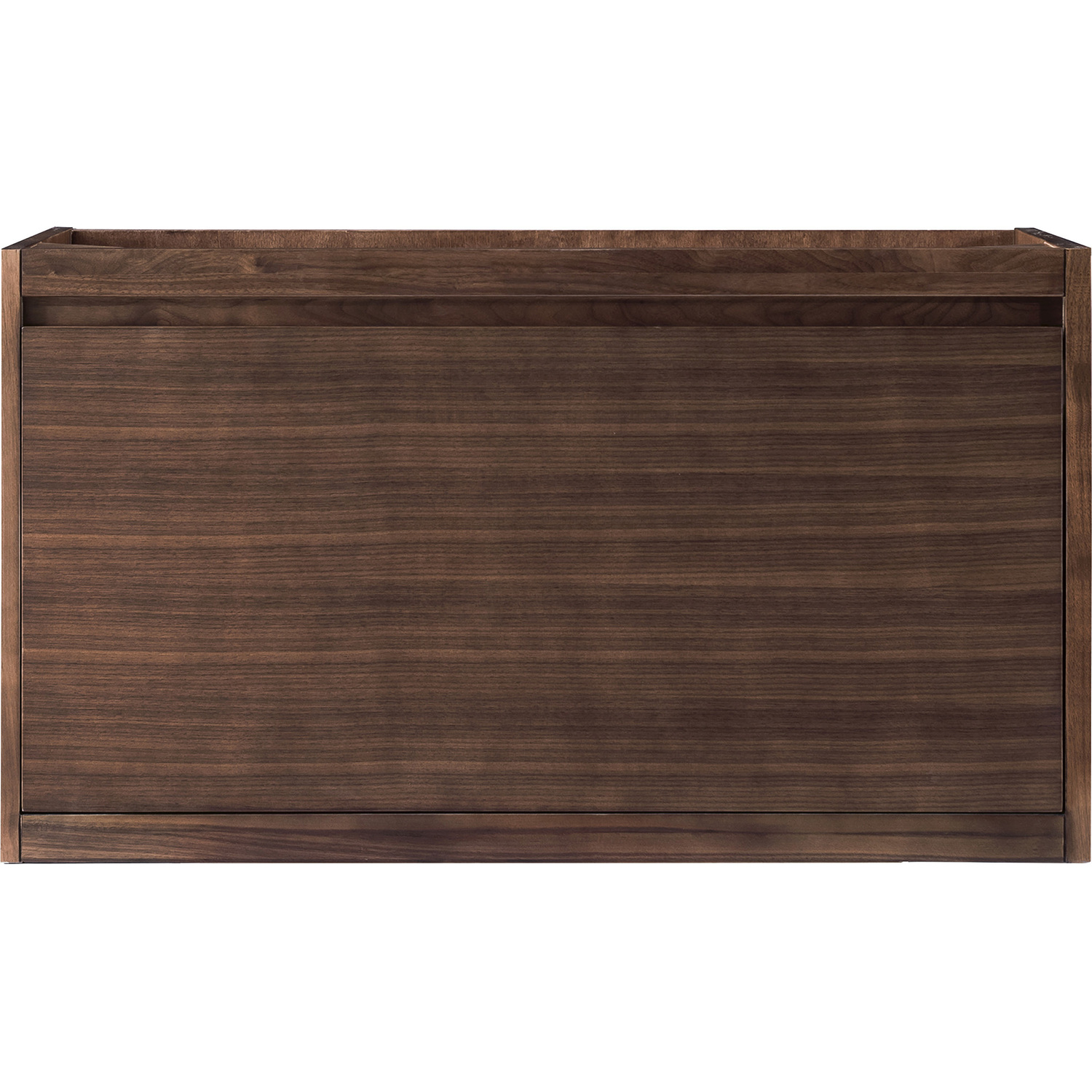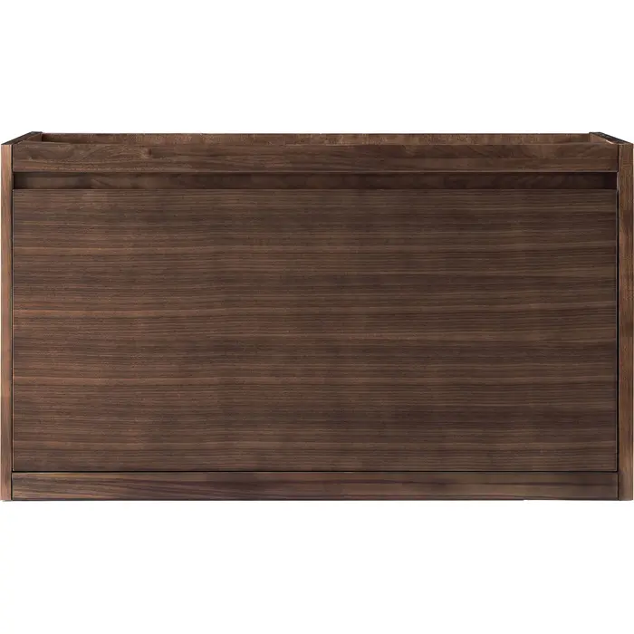 The Mantova 35.4” Mid-Century Walnut Single Vanity Cabinet by James Martin Vanities will elevate your space by adding a touch of timeless décor to your bathroom. This vanity combines a cutting-edge design with pristine craftmanship to bring your bathroom a clean modern look providing you with both style and functionality. Generous storage features include soft-close drawers with one removable drawer organizer.Mid-Century Walnut single vanity cabinet with two interior drawersCabinet only, hardware/stand not includedSolid kiln-dried Grade A hardwoodCabinet is finished inside and out with a premium undercoat finish for superior moisture and UV resistanceSoft-close undermount drawer glidesDrawer bottoms are lined with our signature brushed aluminum laminateCabinet only, countertop not includedThis cabinet can be wall-hung; mounting hardware includedIdeal for the modern home, the Mantova Collection by James Martin Vanities offers a clean, contemporary look. Superbly crafted out of durable wood, it is immediately recognizable by its inherent beauty and durability. A true masterpiece of elegance and style, that is available in either a freestanding or wall-mounted edition. Each drawer is soft closing with ample storage room, that does not impede the design aesthetic of the overall piece. Each vanity comes with your choice of composite sink color either a Glossy White or a Charcoal Black Matte, as well as two options in cabinet finishes, Mid-Century Walnut or Glossy White. To complete the look, choose between three options for the metal base; Brushed Nickel, Champagne Brass, or Matte Black. The Mantova collection is available in multiple sizes and will work with a wide variety of different styles and decors.1 year warranty against manufacturer's defects. We will repair or replace any defective product, if the product is defective in material or workmanship at our discretion. No warranty is expressed or implied regarding damages resulting from consumer misuse.