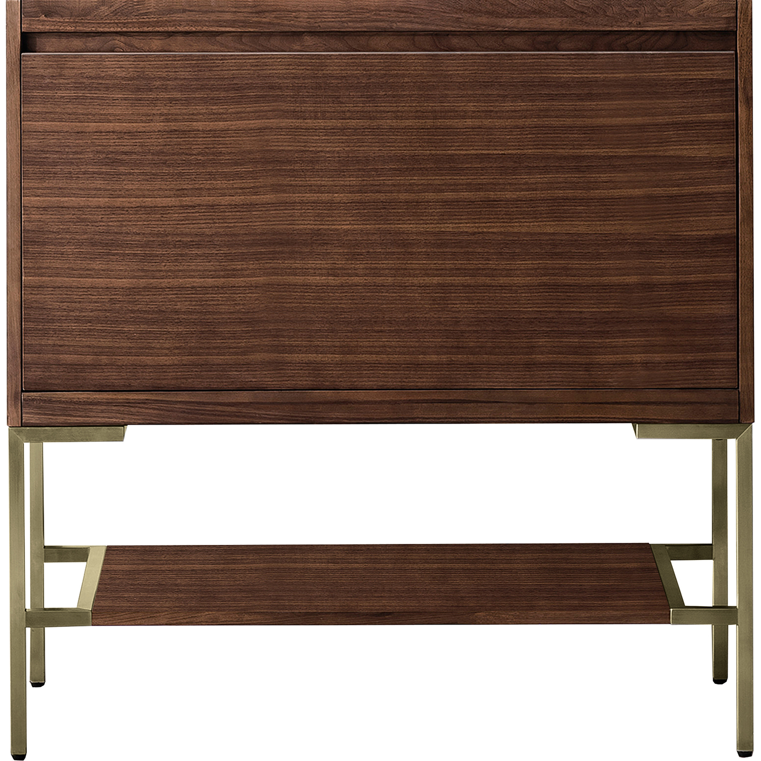 James Martin Mantova 35.4 inch Single Vanity Cabinet, Mid-Century Walnut, Champagne Brass Base, 840108977565, 805-V35.4-WLT-CB