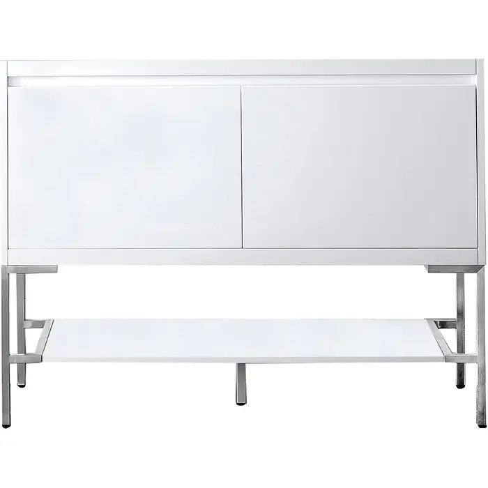 James Martin Mantova 47.3 inch Single Vanity Cabinet, Glossy White, Brushed Nickel Base, 840108962554, 805-V47.3-GW-BNK