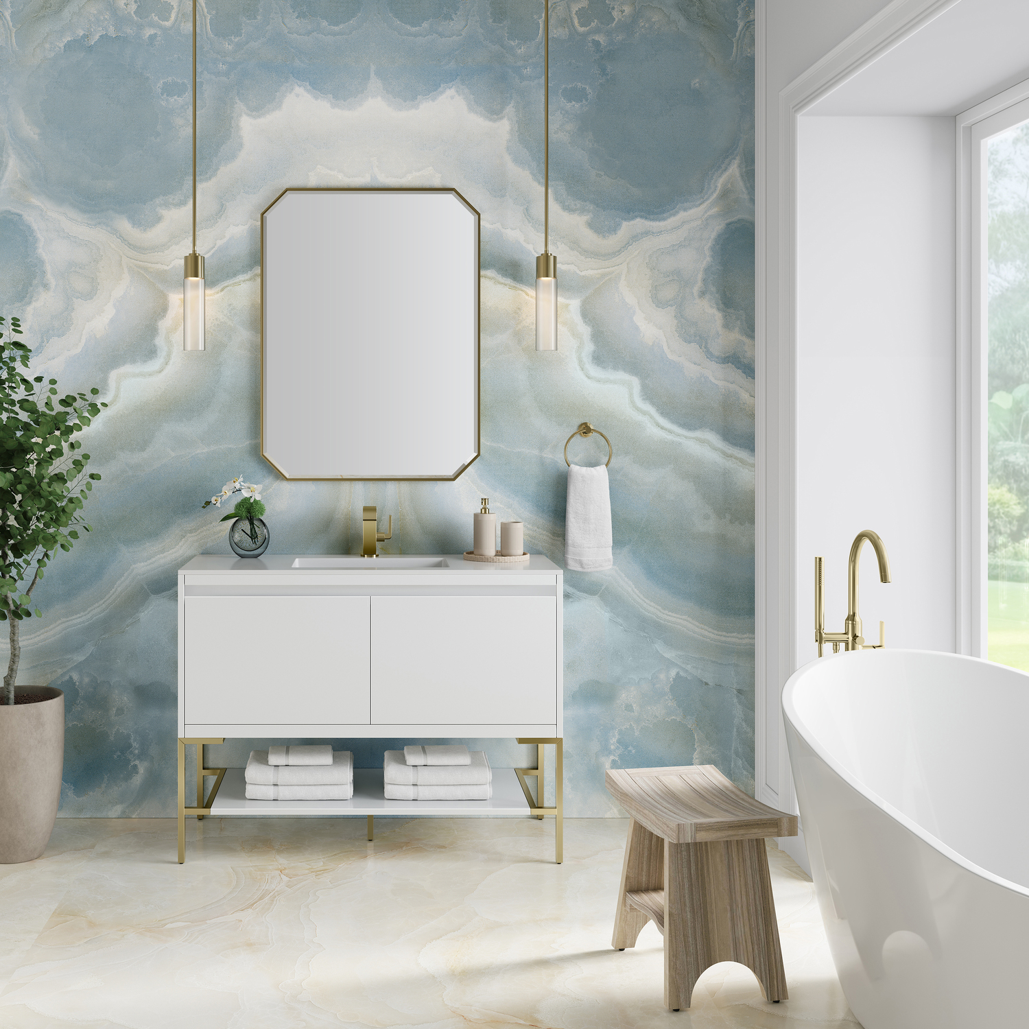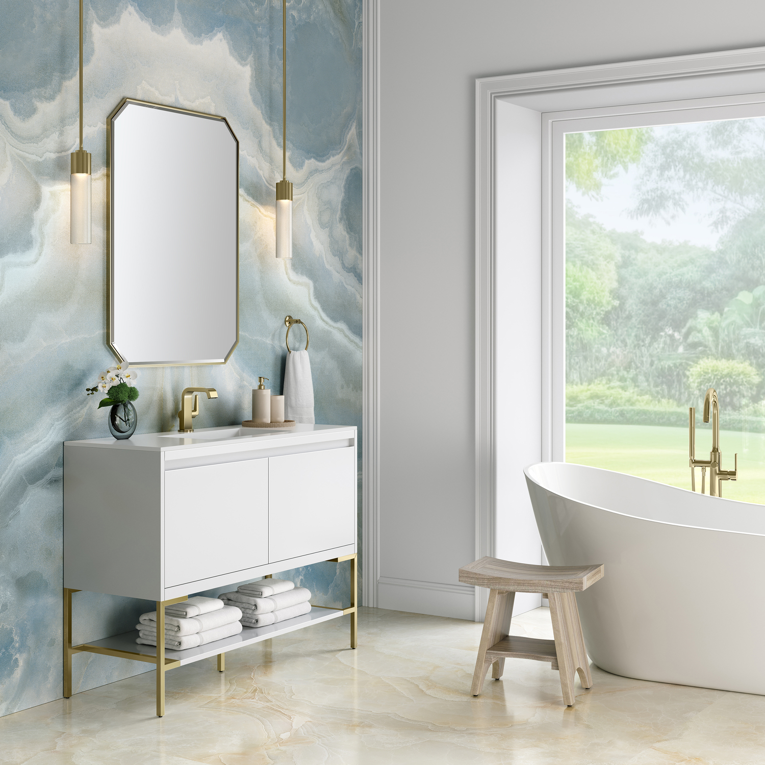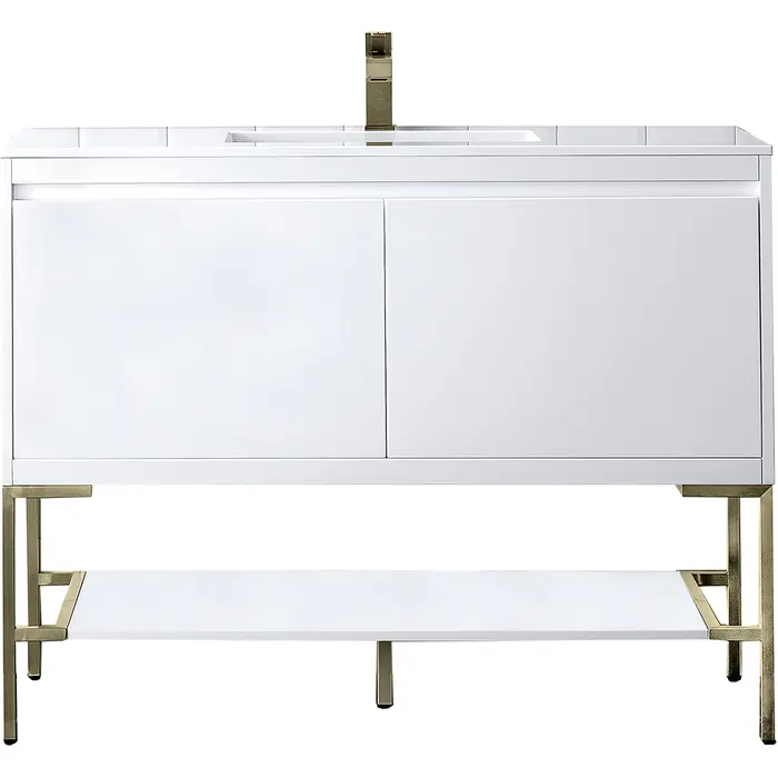 James Martin Mantova 47.3 inch Single Vanity, Glossy White, Champagne Brass Base w/ Glossy White Composite Stone Top, 840108962646, 805-V47.3-GW-CB-GW