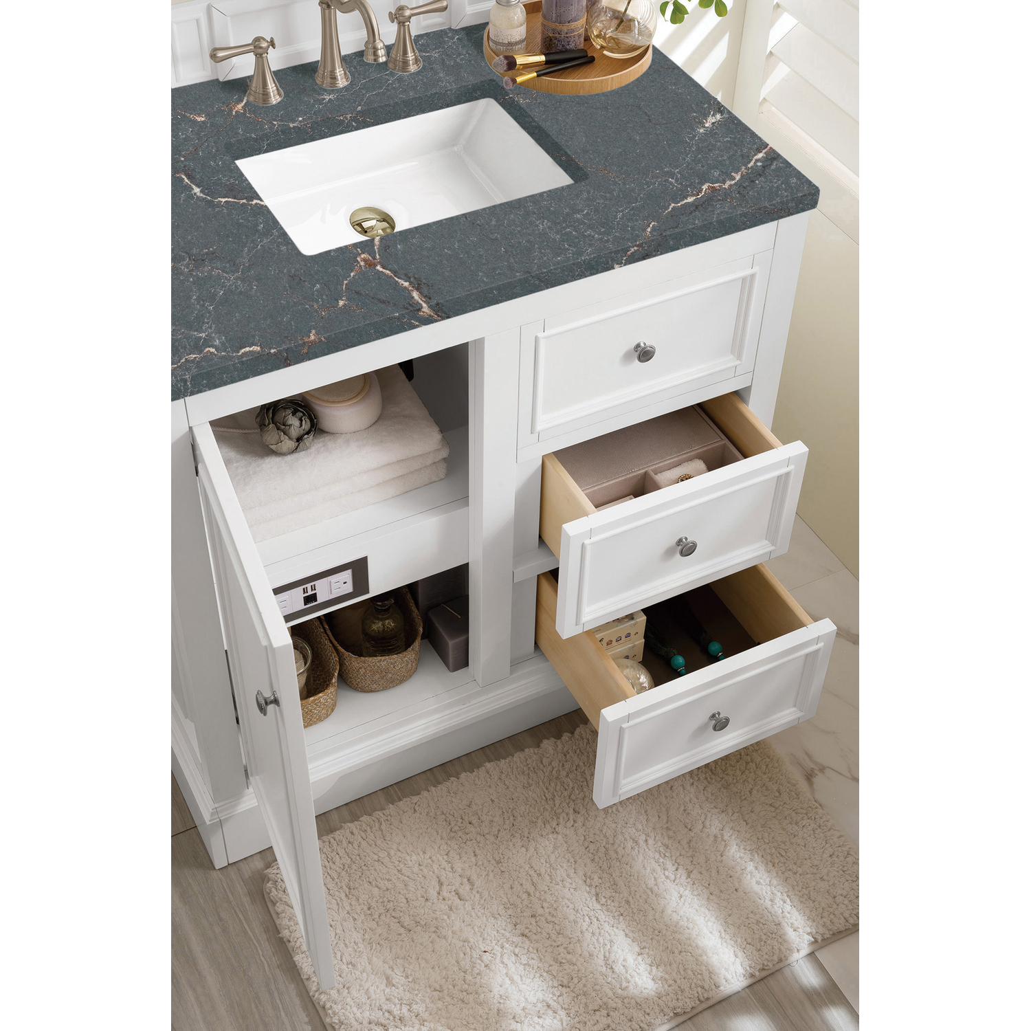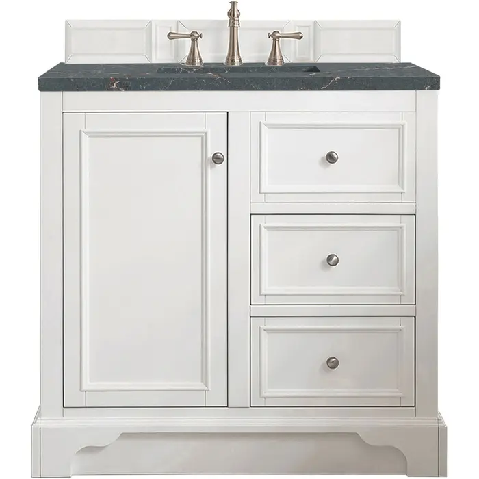 James Martin De Soto 36 inch Single Vanity, Bright White w/ 3 CM Parisien Bleu Quartz Top, 840108968440, 825-V36-BW-3PBL