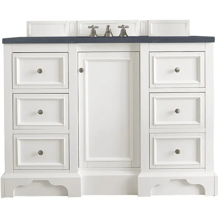 James Martin De Soto 48 inch Single Bathroom Vanity, Bright White w/ 3 CM Charcoal Soapstone Quartz Top 825-V48-BW-3CSP
