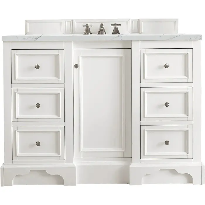 James Martin De Soto 48 inch Single Bathroom Vanity, Bright White w/ 3 CM Ethereal Noctis Quartz Top 825-V48-BW-3ENC