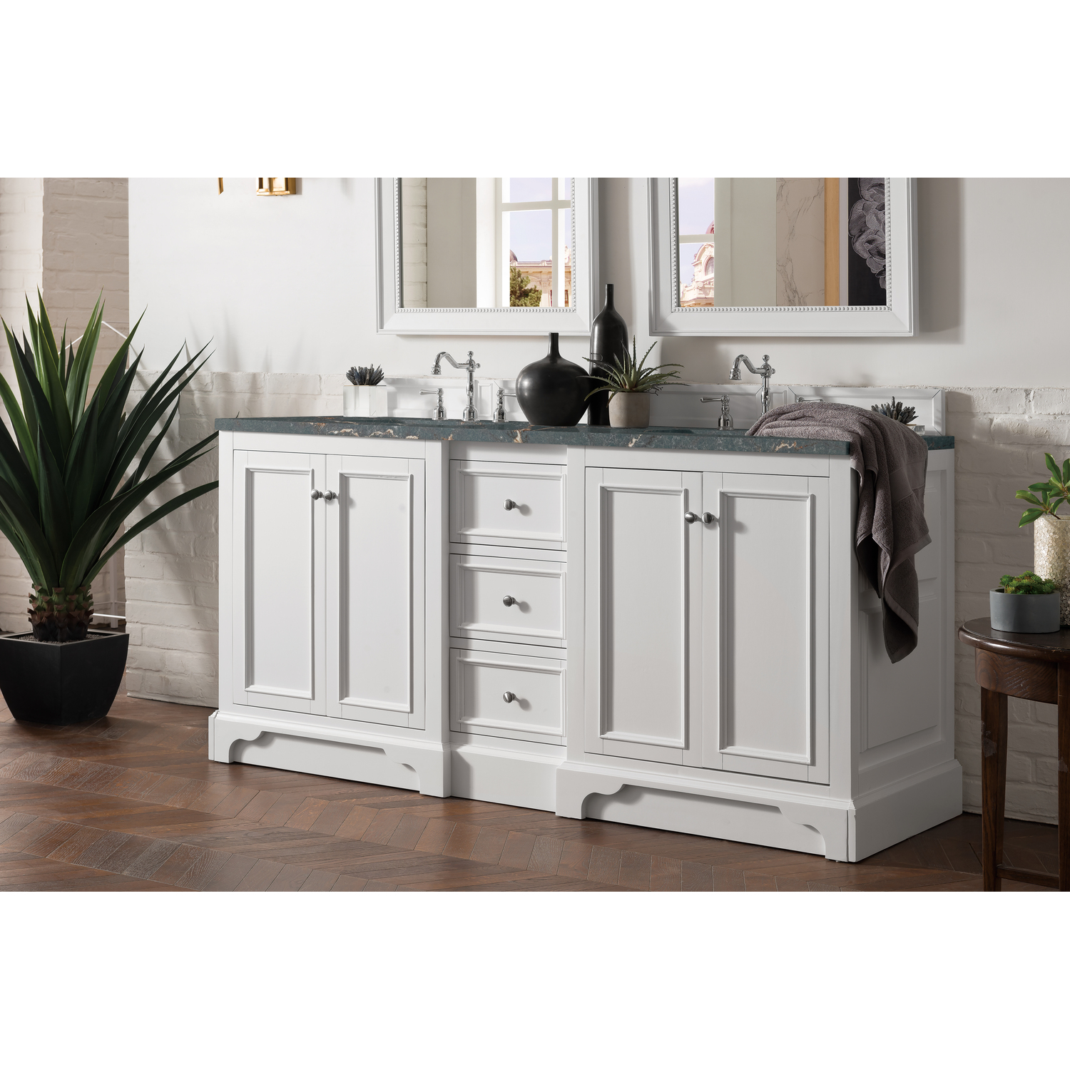 James Martin De Soto 72 inch Double Vanity, Bright White w/ 3 CM Parisien Bleu Quartz Top, 840108968464, 825-V72-BW-3PBL