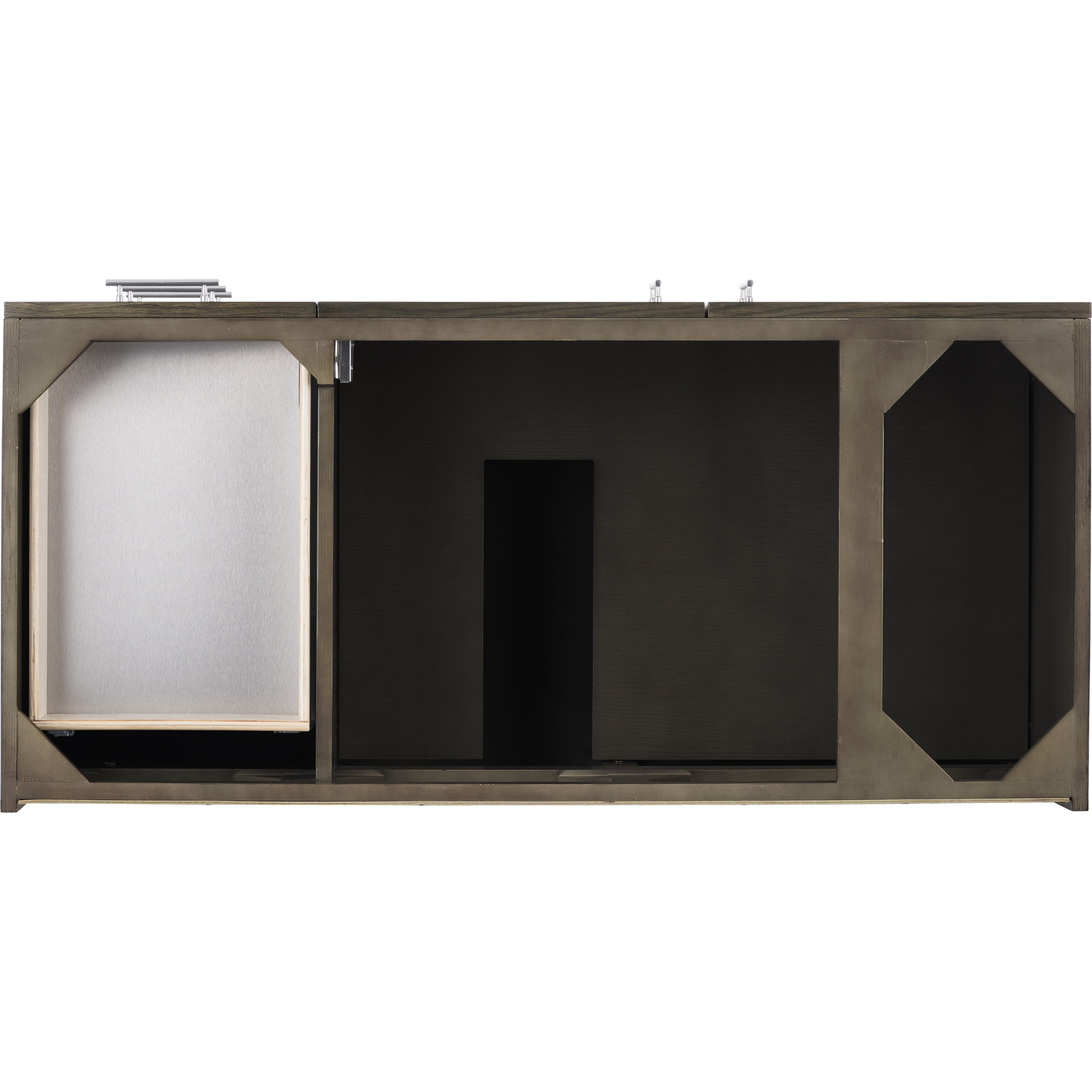 - Drawer bottoms are lined with our signature brushed aluminum laminate