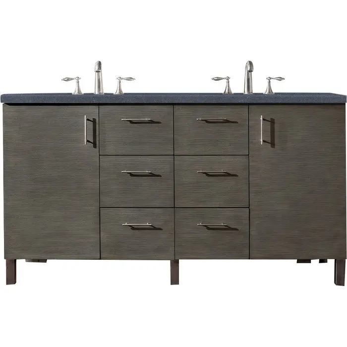 James Martin Metropolitan 60 inch Double Bathroom Vanity, Silver Oak w/ 3 CM Charcoal Soapstone Quartz Top 850-V60D-SOK-3CSP