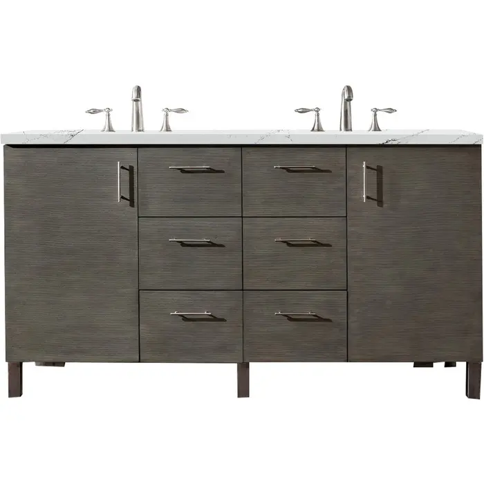 James Martin Metropolitan 60 inch Double Bathroom Vanity, Silver Oak w/ 3 CM Ethereal Noctis Quartz Top 850-V60D-SOK-3ENC