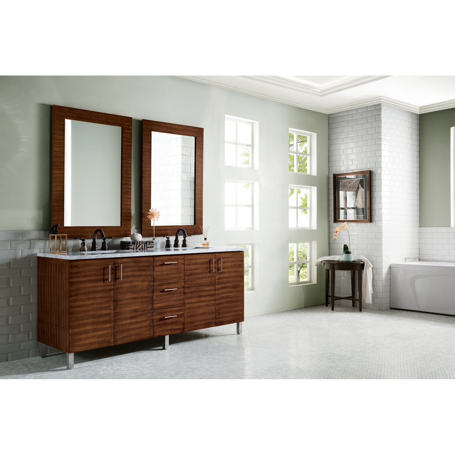 James Martin Metropolitan 72 inch Double Bathroom Vanity, American Walnut w/ 3 CM Carrara Marble Top 850-V72-AWT-3CAR