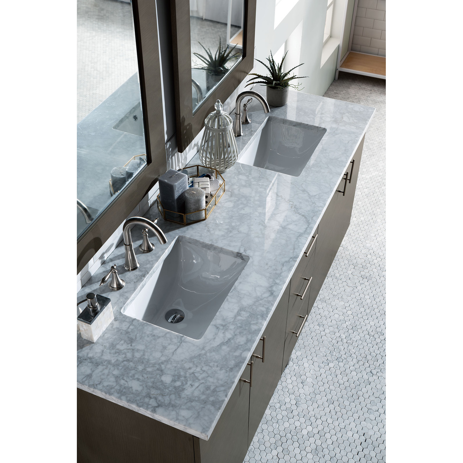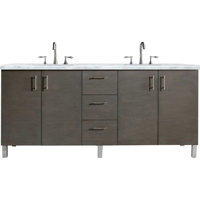 James Martin Metropolitan 72 inch Double Bathroom Vanity, Silver Oak w/ 3 CM Carrara Marble Top 850-V72-SOK-3CAR