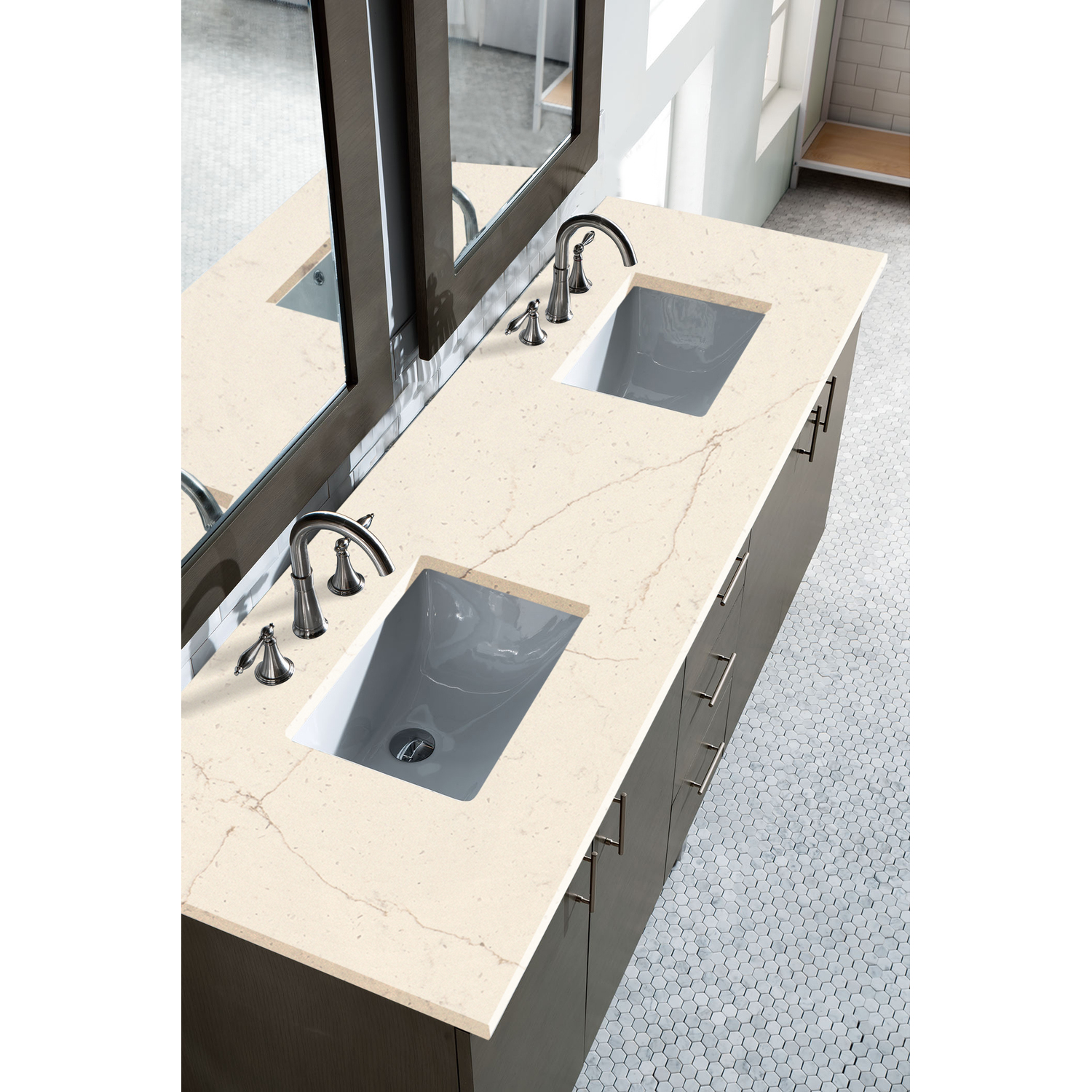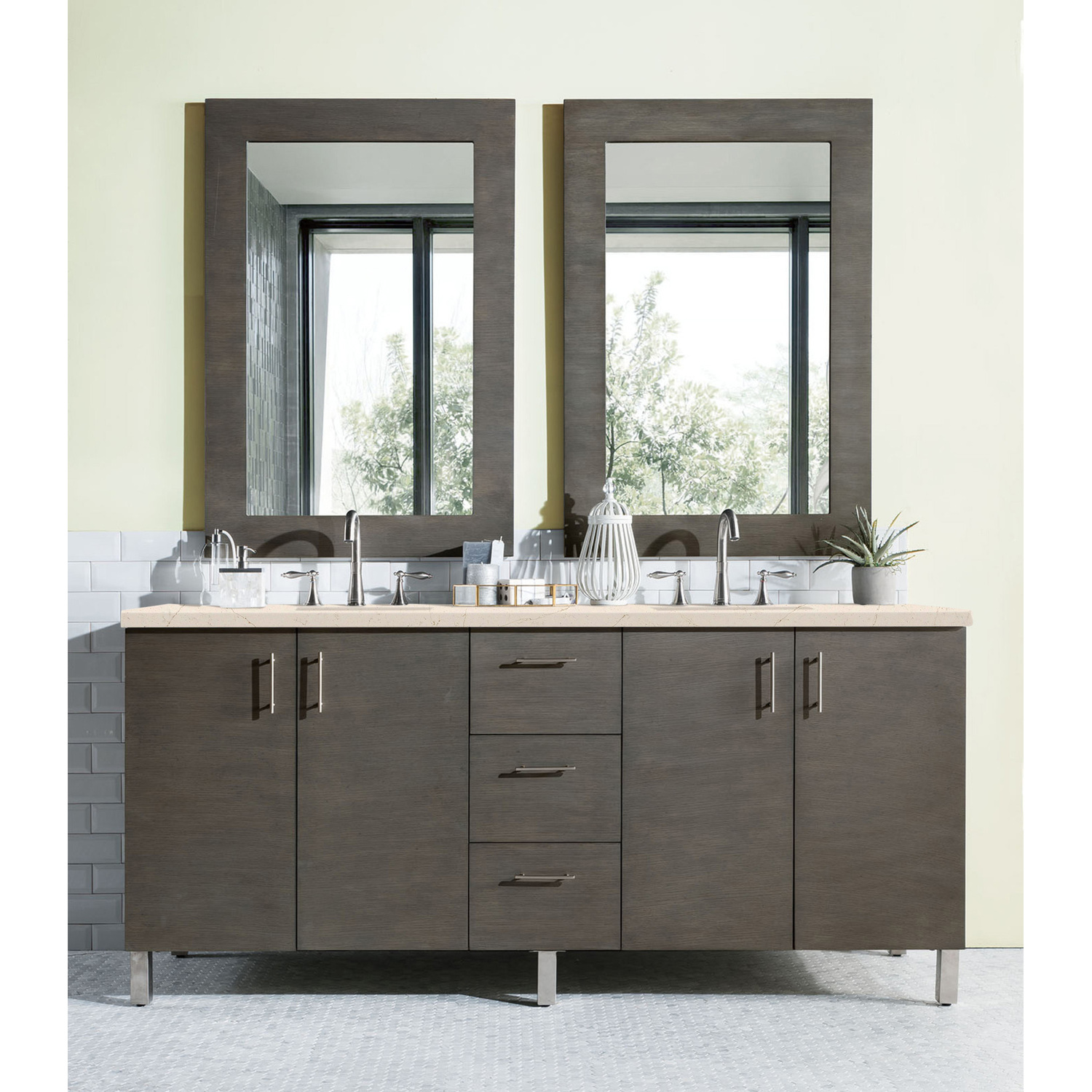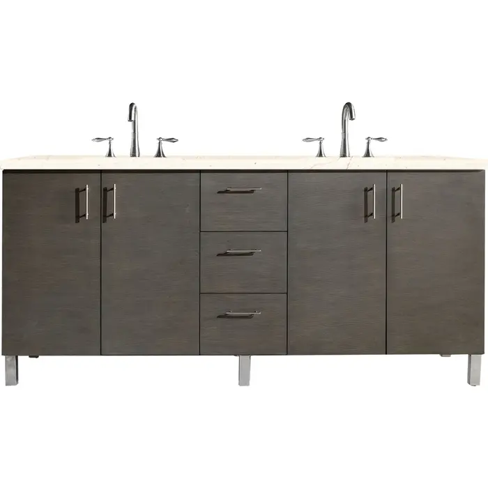 James Martin Metropolitan 72 inch Double Bathroom Vanity, Silver Oak w/ 3 CM Eternal Marfil Quartz Top 850-V72-SOK-3EMR
