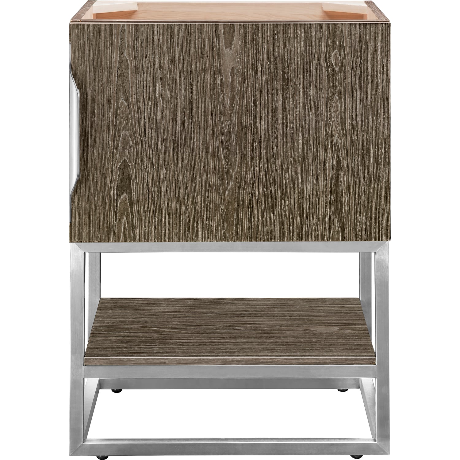 Add a fresh contemporary touch to your bathroom with the elegant 24" Columbia Single Vanity Cabinet by James Martin Vanities. Includes one soft-closing cabinet door in a lovely Ash Gray weathered wood look, this stylish bathroom cabinet features clean lines and a simple metal base with tons of storage in a Brushed Nickel finish. The door opens to an under-sink storage space with one adjustable shelf that will allow you to store your bathroom essentials. The beautiful Brushed Nickel hardware is included, giving this cabinet the perfect finishing touch. The cabinet is finished inside and out with a premium finish for superior moisture and UV resistance.Solid plywood with engineered veneer meticulously created using real wood fibers carefully selected and dyed to create this unique pattern and warm gray color combination120 Volt UL rated electrical component with two electrical and two USB (2.0) outletsOne door, one exterior shelfDrawer bottoms are lined with our signature brushed aluminum laminate.Discover elegance redefined with the Columbia Vanity Collection by James Martin Vanities. A testament to modern luxury, this collection brings a transformative touch to your bathroom space. With a choice of three cabinet finishes, each piece in the Columbia collection is a blend of minimalist aesthetics and functional brilliance, featuring sleek, clean lines and sculpted hardware in three metal finish options. Whether you prefer a striking, free-standing statement piece or a sleek, space-saving wall-mounted design, the Columbia collection caters to your unique style. Its innovative installation options, including an optional metal base, ensure a seamless fit into any bathroom layout. The beautiful yet durable composite stone integrated sinktop is impact-resistant with an antibacterial nano-coat surface."1 year warranty against manufacturer's defects. We will repair or replace any defective product, if the product is defective in material or workmanship at our discretion. No warranty is expressed or implied regarding damages resulting from consumer misuse.