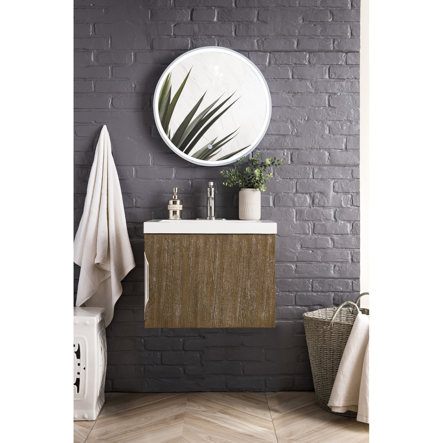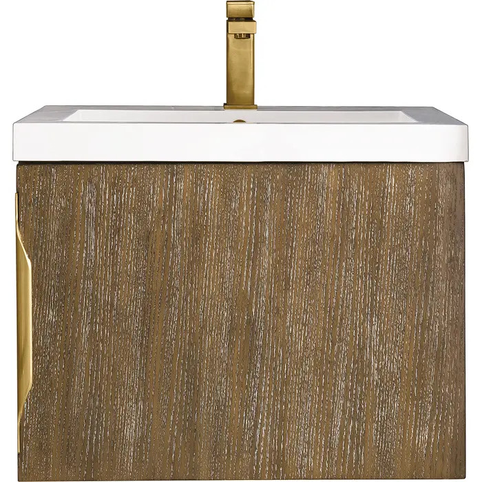 James Martin Columbia 24 inch Single Vanity, Latte Oak w/ White Glossy Composite Stone Top, 840108963438, 883-V24-LO-WG