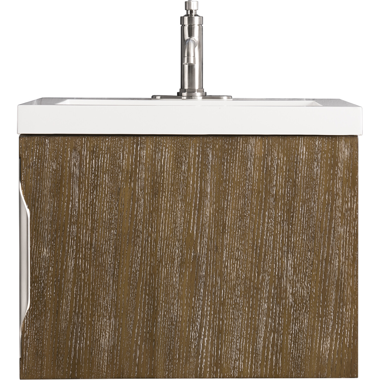 Add a fresh, contemporary touch to your bathroom with the elegant 24" Columbia Single Vanity by James Martin Vanities. Includes one soft-closing cabinet door in a lovely Latte Oak look. The door opens to an under-sink storage space with one adjustable shelf that will allow you to store your bathroom essentials. The beautiful Brushed Nickel hardware is included, giving this cabinet the perfect finishing touch. The cabinet is finished inside and out with a premium finish for superior moisture and UV resistance. This versatile cabinet includes an integrated White Glossy Composite Stone top that is pre-drilled for your convenience.Composite stone integrated sink top in White GlossySolid plywood with Red Oak Veneers120 Volt UL rated electrical component with two electrical and two USB (2.0) outletsOne doorDrawer bottoms are lined with our signature brushed aluminum laminate.Discover elegance redefined with the Columbia Vanity Collection by James Martin Vanities. A testament to modern luxury, this collection brings a transformative touch to your bathroom space. With a choice of three cabinet finishes, each piece in the Columbia collection is a blend of minimalist aesthetics and functional brilliance, featuring sleek, clean lines and sculpted hardware in three metal finish options. Whether you prefer a striking, free-standing statement piece or a sleek, space-saving wall-mounted design, the Columbia collection caters to your unique style. Its innovative installation options, including an optional metal base, ensure a seamless fit into any bathroom layout. The beautiful yet durable composite stone integrated sinktop is impact-resistant with an antibacterial nano-coat surface."1 year warranty against manufacturer's defects. We will repair or replace any defective product, if the product is defective in material or workmanship at our discretion. No warranty is expressed or implied regarding damages resulting from consumer misuse.