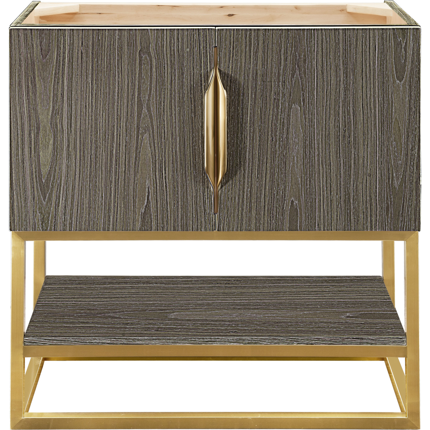 Add a fresh, contemporary touch to your bathroom with the elegant 31.5" Columbia Single Vanity Cabinet by James Martin Vanities. Includes two soft-closing cabinet doors in a lovely Ash Gray weathered wood look, this stylish bathroom cabinet features clean lines and a simple metal base with tons of storage in a Radiant Gold finish. The door opens to an under-sink storage space with one adjustable shelf that will allow you to store your bathroom essentials. The Radiant Gold pulls are included, giving this cabinet the perfect finishing touch. The cabinet is finished inside and out with a premium finish for superior moisture and UV resistance.Hardware/Stand Finish: Radiant GoldSolid plywood with engineered veneer meticulously created using real wood fibers carefully selected and dyed to create this unique pattern and warm gray color combination120 Volt UL rated electrical component with two electrical and two USB (2.0) outletsTwo doors, one exterior shelfDrawer bottoms are lined with our signature brushed aluminum laminate.Decorative furniture grade vanity gives your bathroom an elegant touchThree options of stainless steel hardware included -Brushed Nickel, Matte Black, Radiant GoldPremium soft-close hingesSuperior Moisture and UV resistanceDiscover elegance redefined with the Columbia Vanity Collection by James Martin Vanities. A testament to modern luxury, this collection brings a transformative touch to your bathroom space. With a choice of three cabinet finishes, each piece in the Columbia collection is a blend of minimalist aesthetics and functional brilliance, featuring sleek, clean lines and sculpted hardware in three metal finish options. Whether you prefer a striking, free-standing statement piece or a sleek, space-saving wall-mounted design, the Columbia collection caters to your unique style. Its innovative installation options, including an optional metal base, ensure a seamless fit into any bathroom layout. The beautiful yet durable composite stone integrated sinktop is impact-resistant with an antibacterial nano-coat surface."1 year warranty against manufacturer's defects. We will repair or replace any defective product, if the product is defective in material or workmanship at our discretion. No warranty is expressed or implied regarding damages resulting from consumer misuse.