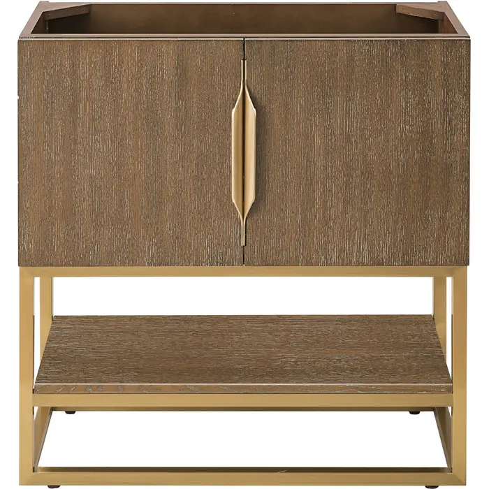James Martin Columbia 31.5 inch Single Vanity Cabinet, Latte Oak, Radiant Gold, 840108963629, 883-V31.5-LO-RG